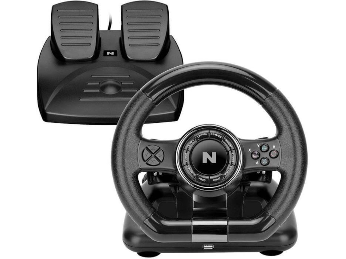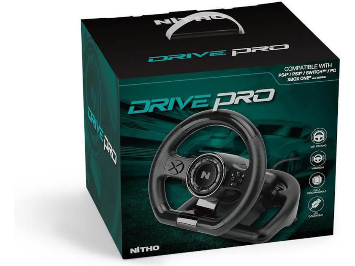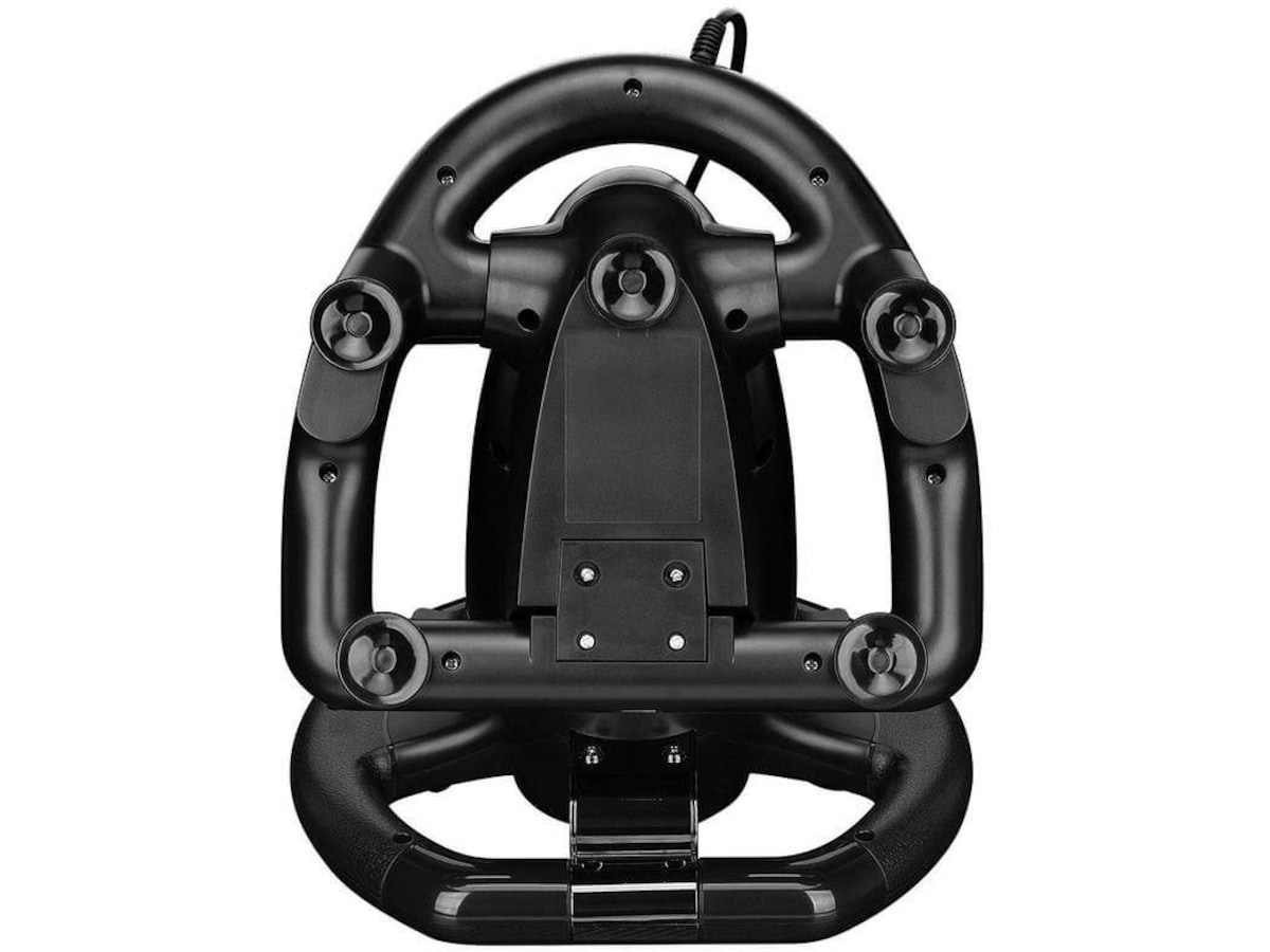 Gummibelegg som forbedrer kjøreytelsen, D-Pad-navigasjon, to hendler som kan konfigureres som gir eller gass/brems, og tastetilordning for å tilordne funksjoner til alle knapper og hendler