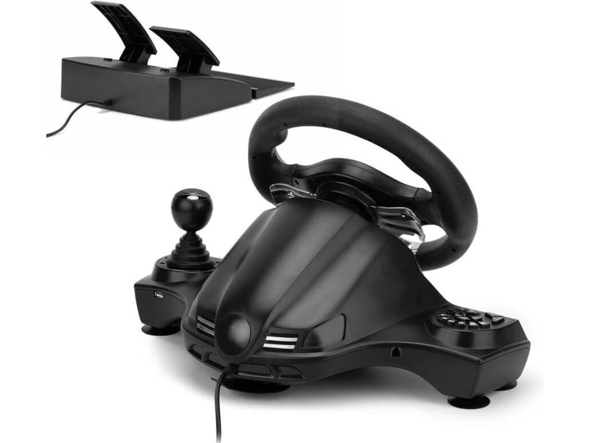 Sugekopper og solid klemmesystem for å feste rattet sikkert til bordet, ekstra lang 3 meter USB-kabel for å koble til konsoller og PC, og gratis nedlastbar driver for PC (kompatibel med Windows®10 og Windows®11)