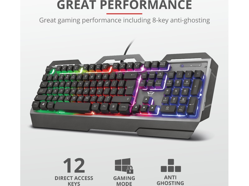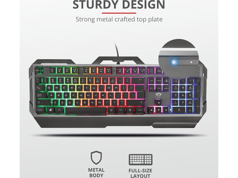 Forbedre spillopplevelsen med utholdenheten til Trust GXT 856 Torac gamingtastatur i metall. Den førsteklasses metallrammen gir et solid fundament for forbedret spill.
