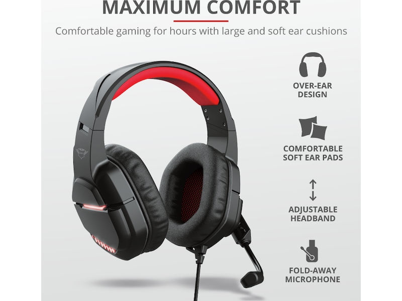 Med en helt ny design kombinerer Trust GXT 488 Nixxo kraftig lyd med et stilig utseende. Alt, fra 50 mm-drivere til LED-opplyste sider, er laget med én ting i tankene: storhet.