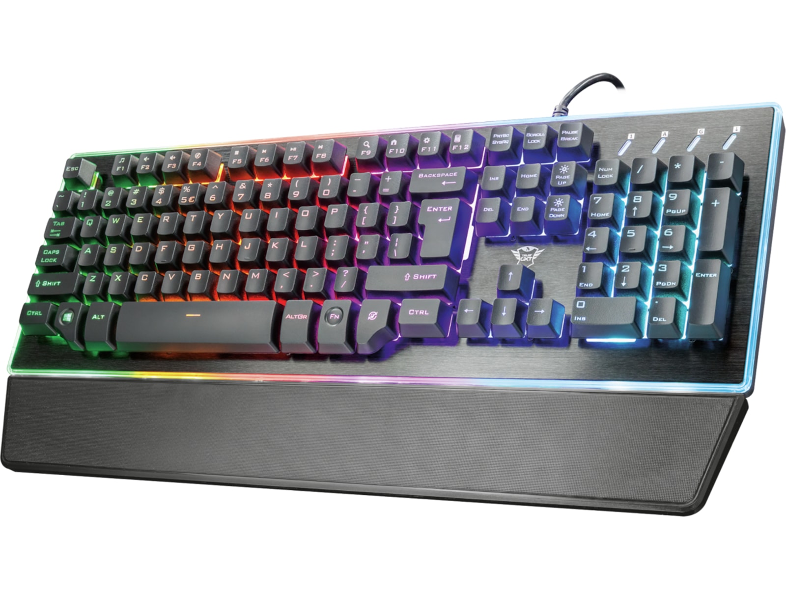 Halvmekaniske taster: Kombiner den myke berøringen til et konvensjonelt tastatur med utseendet og følelsen til et mekanisk tastatur 9 regnbuebølgemoduser med justerbar lysstyrke Spesiell gamingmodus som deaktiverer Windows-tasten Avansert anti-ghosting: opptil 16 samtidige tastetrykk 12 medietaster for direkte tilgang Avtagbar håndleddstøtte Topplate laget av ekte metall Sklisikre gummiføtter