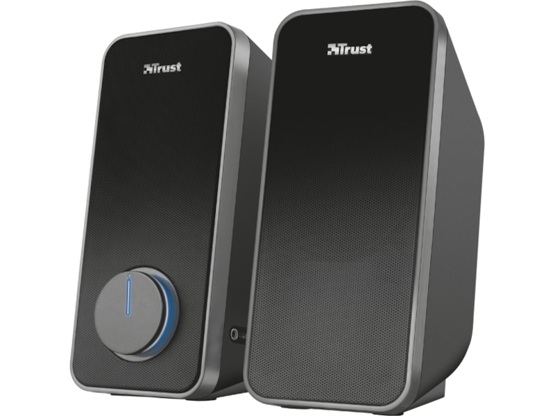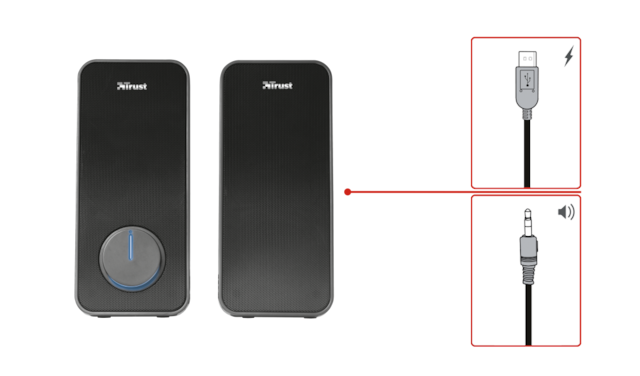 Høyttalerne kan plasseres hvor som helst takket være den kompakte designen med et stilig metallgitter. De vil være et perfekt tillegg til ethvert skrivebord. Trust Arys er USB-drevet, noe som betyr at det er svært enkelt å installere høyttalerne. Bare koble USB-kabelen til datamaskinen din og koble inn 3,5 mm-kontakten, så vil høyttaleren kanalisere alle lyder.