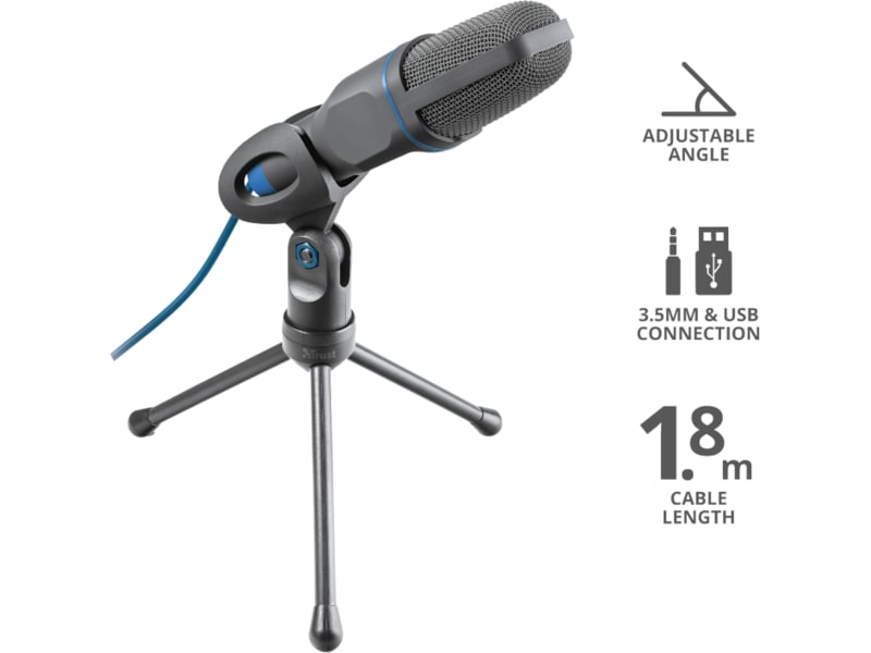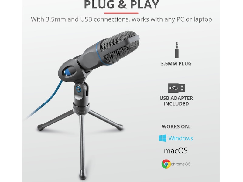 Trust Mico Mikrofon med to tilkoblinger Brukervennlig mikrofon med to tilkoblinger og stativ, kompatibel med alle slags stasjonære og bærbare datamaskiner