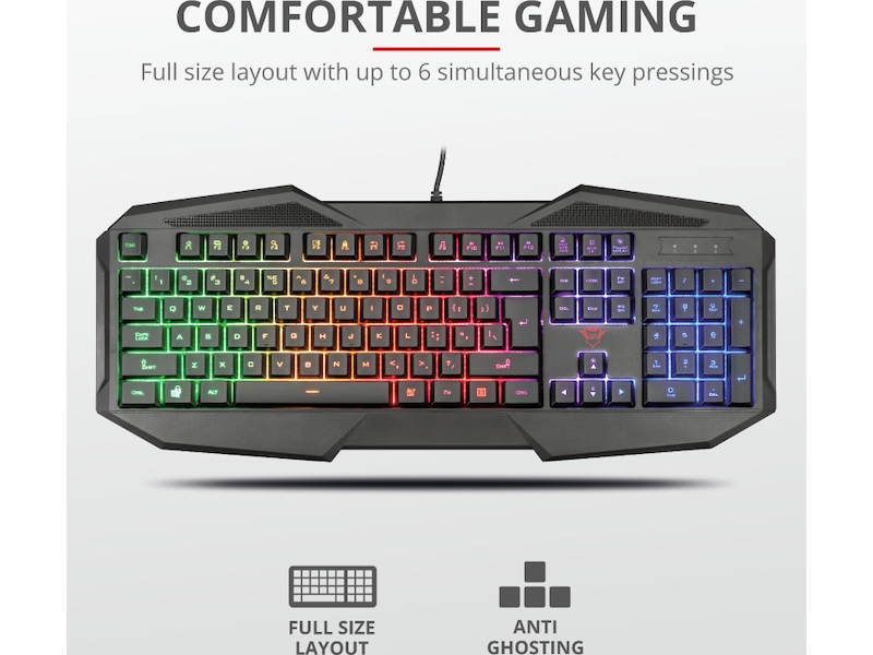 Tastaturet har en layout i full størrelse, noe som innebærer at det optimalt designet for rask tasteaktivering. GXT 830-RW har anti-ghosting-teknologi for å sikre at du kan spille raskt og nøyaktig. Du vil beholde kontrollen selv når du trykker på opptil 6 taster samtidig.