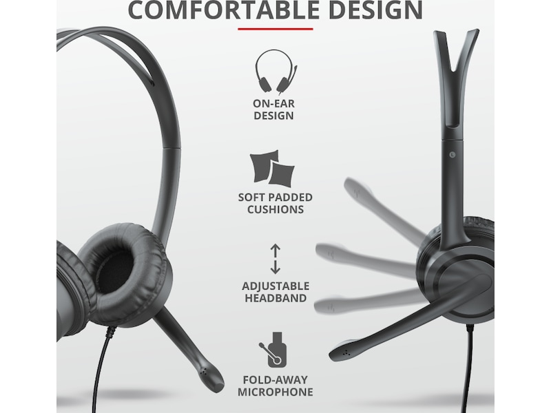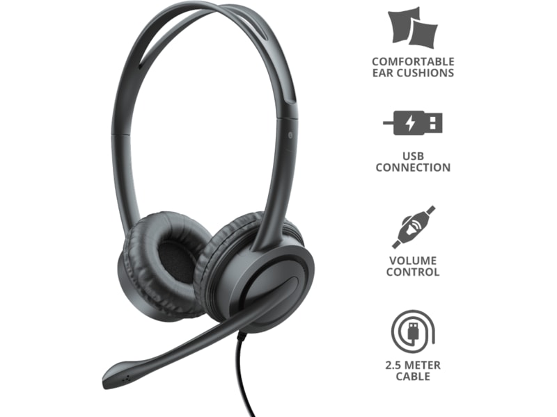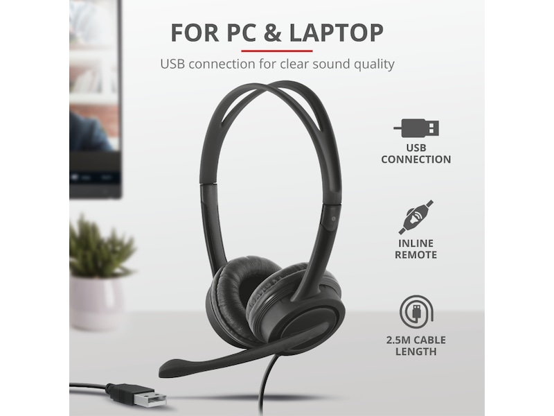 Viktigste egenskaper USB-tilkobling for tydelig og støyfri tale under chatting eller spilløkter online Komfortabel design med justerbar hodebøyle og myke øreputer Integrert fjernkontroll med volumkontroll og dempebryter for mikrofon og hodetelefoner Bare koble en plugg til USB-porten på PC-en din; du trenger ikke å koble fra høyttalerne Mikrofonen kan skrus av når du lytter til musikk Ideell for online spilløkter, musikklytting, chatte- og telefoniprogrammer som Hangouts, Teams, Zoom osv. Ekstra lang kabel på 2,5 meter