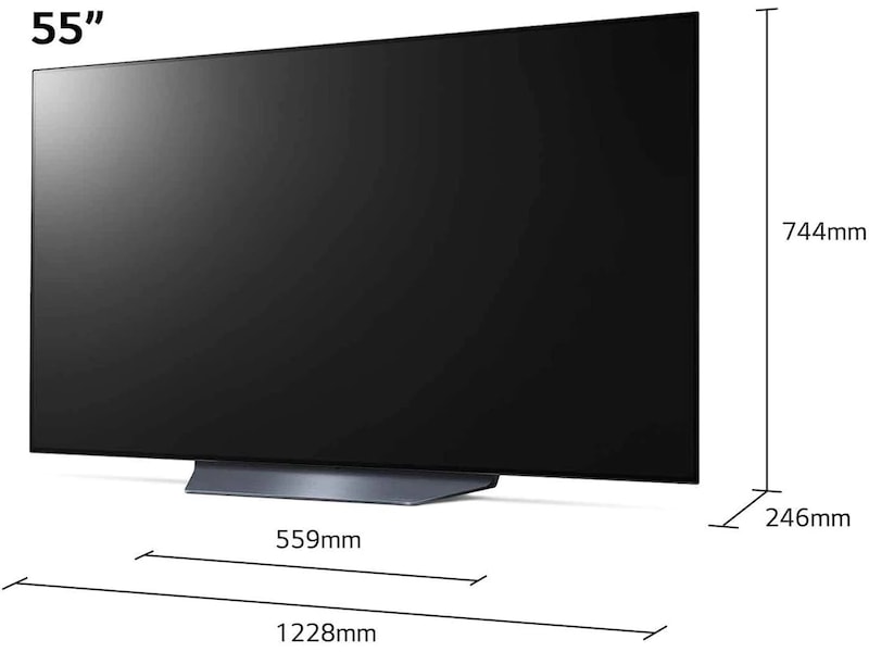 Panel uten stativ - 122.8 cm x 4.69 cm x 70.6 cm x 18.9 kg, Panel med stativ - 122.8 cm x 24.6 cm x 74.4 cm x 19.9 kg