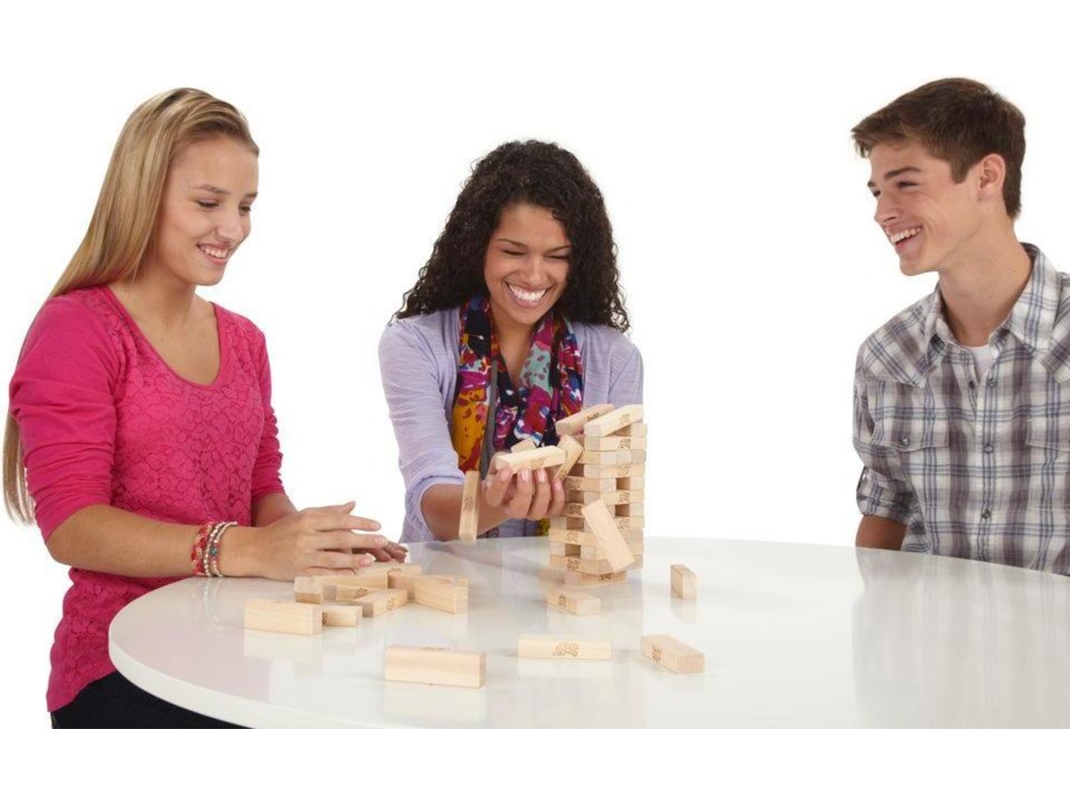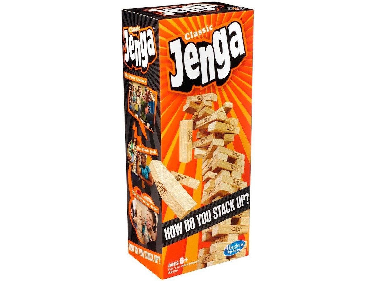 Jenga er et klassisk spill for alle aldre, og får enhver til å sitte på kanten av stolen og holde pusten mens en brikke lirkes ut. Pass på å ikke velte tårnet!