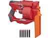 Se for deg selv som en av paktene og gjør deg klar til å kjempe mot UNSC! Blasteren har en trommel med 6 dart og kommer med 6 offisielle Nerf Elite-piler, nok til å lade trommelen helt. Trekk tilbake påfyllingshåndtaket for å gjøre blasteren klar til å skyte, og trykk deretter på avtrekkeren for å skyte 1 pil. Prime og trykk på avtrekkeren igjen for å skyte enda en pil.