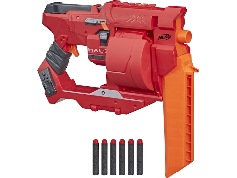 Trommelen har et deksel som åpnes slik at du lettere får tilgang til trommelen for å laste piler. Det inkluderer et spillkort med en kode for å låse opp en digital eiendel i Halo-spillet.* Briller anbefales (ikke inkludert).