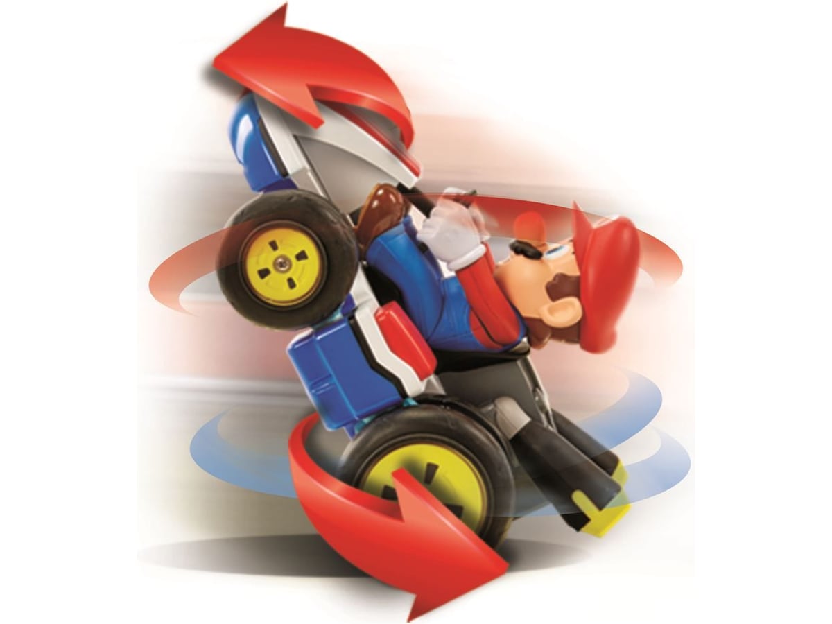 Selvfølgelig ville den krympe! Sett Mario-bilen i standardmodus, eller aktiver moduset Anti-Gravity for å drifte og gjøre triks. Nå kan du til og med snurre hjulene og gjøre 360° spinner!