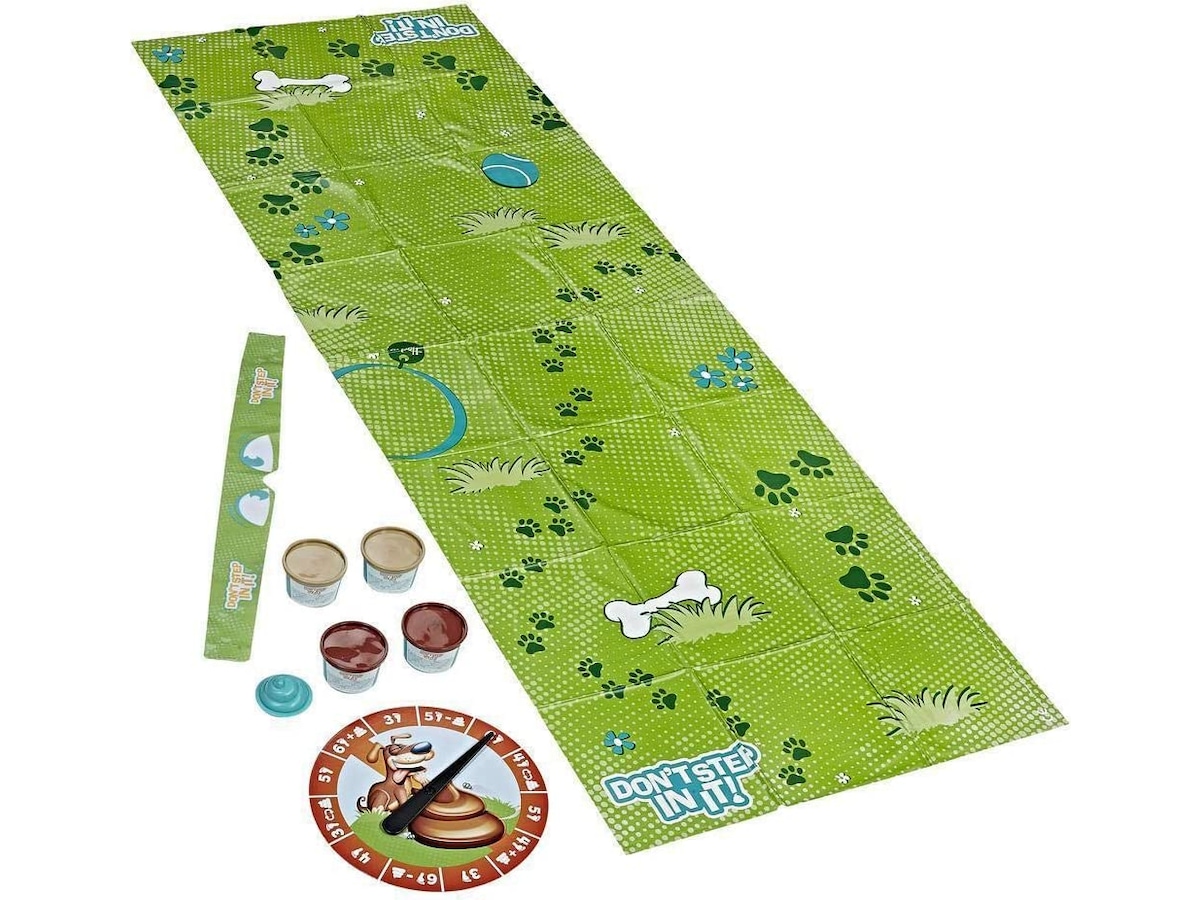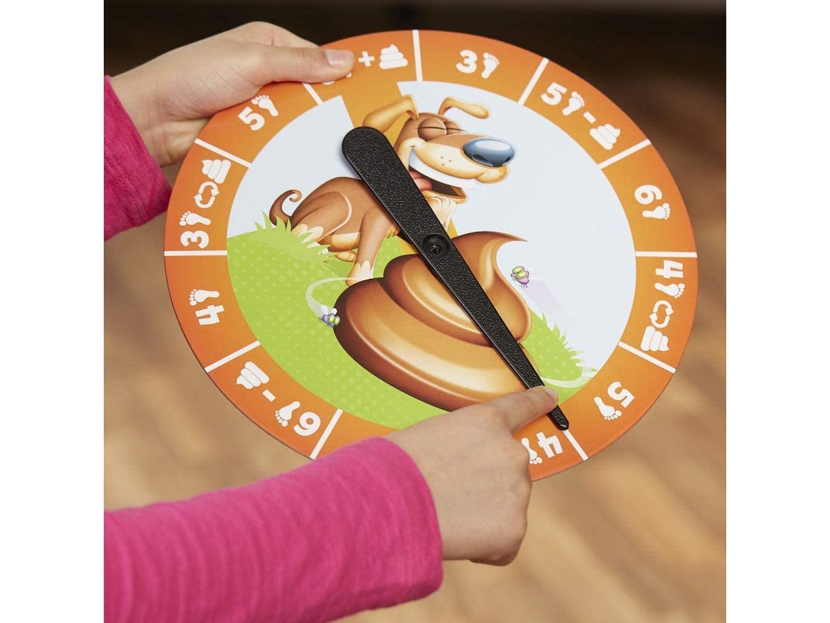 Snurr pilen for å se hvor mange skritt spilleren må ta over matten. Klarer du å unngå å tråkke i hundebæsjen?