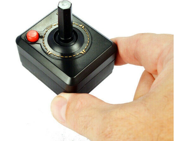 Denne ikoniske joysticken i miniatyr måler 5,5 x 4,5 x 6,5 cm og spiller 5 autentiske lyder fra Asteroids, Centipede, Missile Command og Pong! Trykk på den røde knappen for å aktivere lydene. Joysticken beveger seg i alle retninger og går automatisk tilbake til midten, akkurat som originalen. Det er den perfekte retrogaven til enhver gamer. Batterier er inkludert.