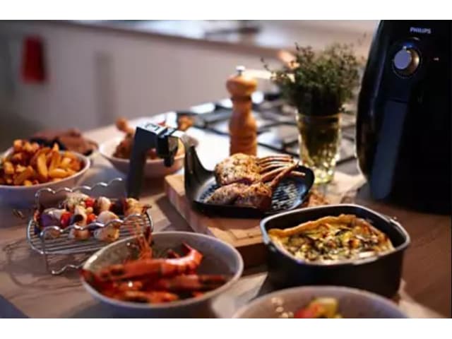 Gjør Airfryers stekeoverflate større med tolags tilbehør. Stek, grill eller frityrstek smakfulle burgere, kyllingvinger, fisk og mye mer på en enkel, rask og sunn måte. Hvis du vil være mer allsidig i matlagingen, kan du bruke grillspydene til å grille grønnsaker eller kjøtt.