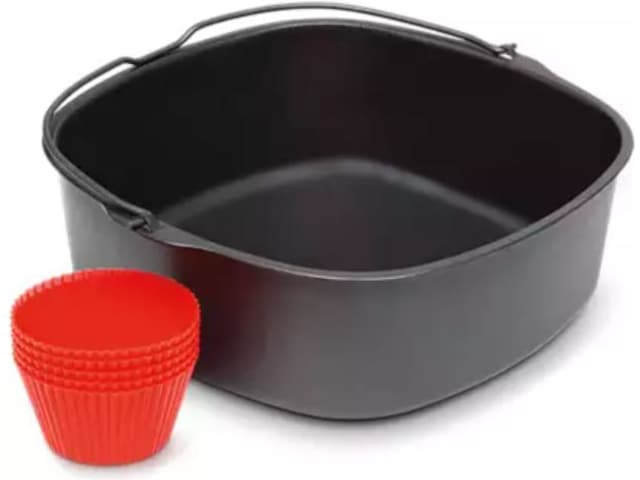 Med Philips bakesett kan du bake alt fra herlige muffins og cupcakes til matpaier og brød i Airfryer. Tilbehøret inkluderer en bakeform med non-stick-belegg og 7 stk muffinsformer i silikon. Begge er laget i materialer som er praktiske å bruke og enkle å rengjøre.