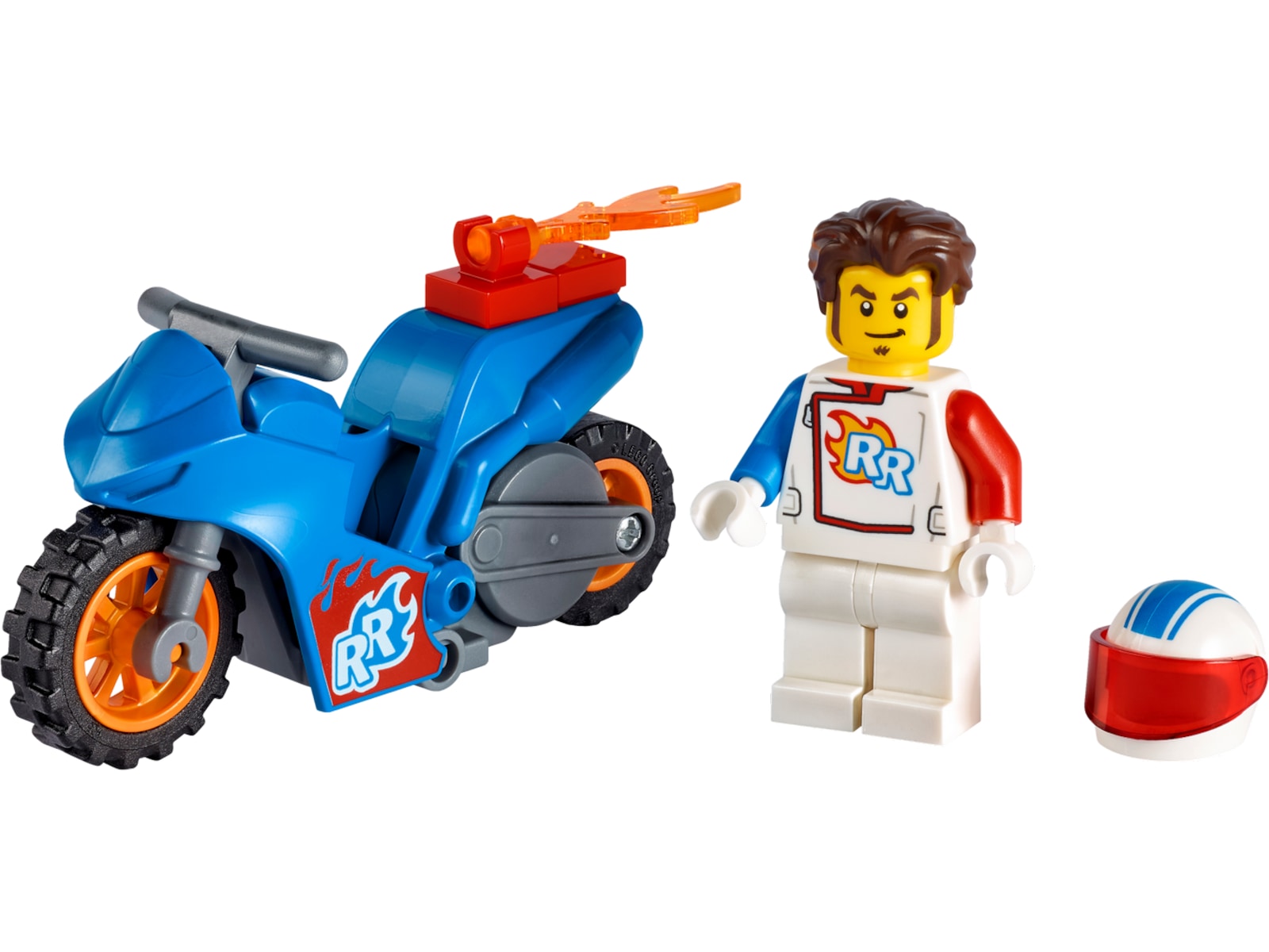 - Hva inneholder esken? Alt barn trenger for å bygge en superkul, svinghjuldrevet stuntmotorsykkel. Inneholder også en minifigur av Rocket Racer fra LEGO® City Adventures TV-serien.
