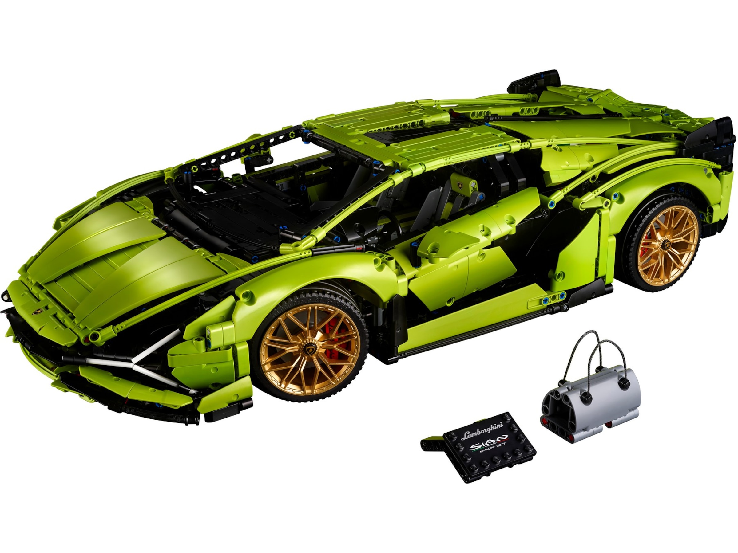 - Denne LEGO® Technic bilen har en åttetrinns sekvensiell girkasse, justerbar bakspoiler, panser foran og bak som kan åpnes, detaljerte skivebremser og gullfargede felger. Nærmere virkelighetens Lamborghini Sián FKP 37 kommer du ikke!
