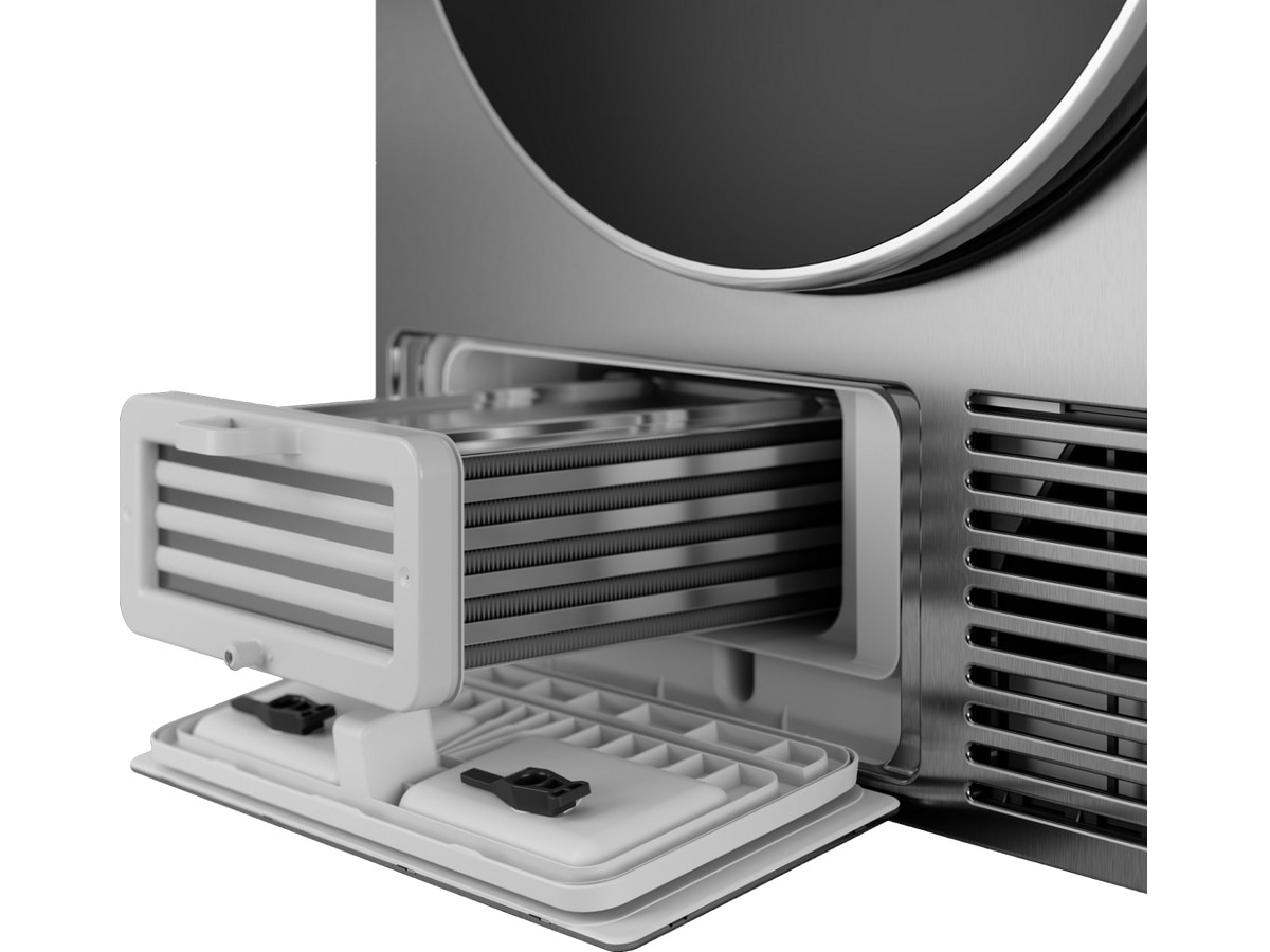 Effektiv lofelle som sørger for at lo og støv ikke kommer til kondensatoren og viften, som er mer følsomme og vanskeligere å rengjøre. Rengjøres enkelt under rennende vann eller med hånden. Dørfilteret åpnes enkelt. Filterrammen er festet med bajonett og skrue. Påminnelse om rengjøring av lofilteret vises i displayet.