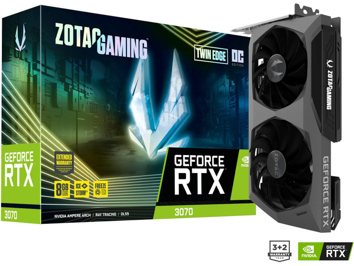 3rd gen Tensor Cores, 2-slot Fan Cooler, 2nd gen Ray Tracing Cores, Freeze Fan Stop, IceStorm 2.0, Omviklingsbakplate av metall, Hvit LED-belysning, NVIDIA Ampere GPU-teknologi, Active Fan Control, LHR (Lite Hash Rate), NVIDIA GPU Boost, Klar for NVIDIA G-Sync, Nvidia DLSS