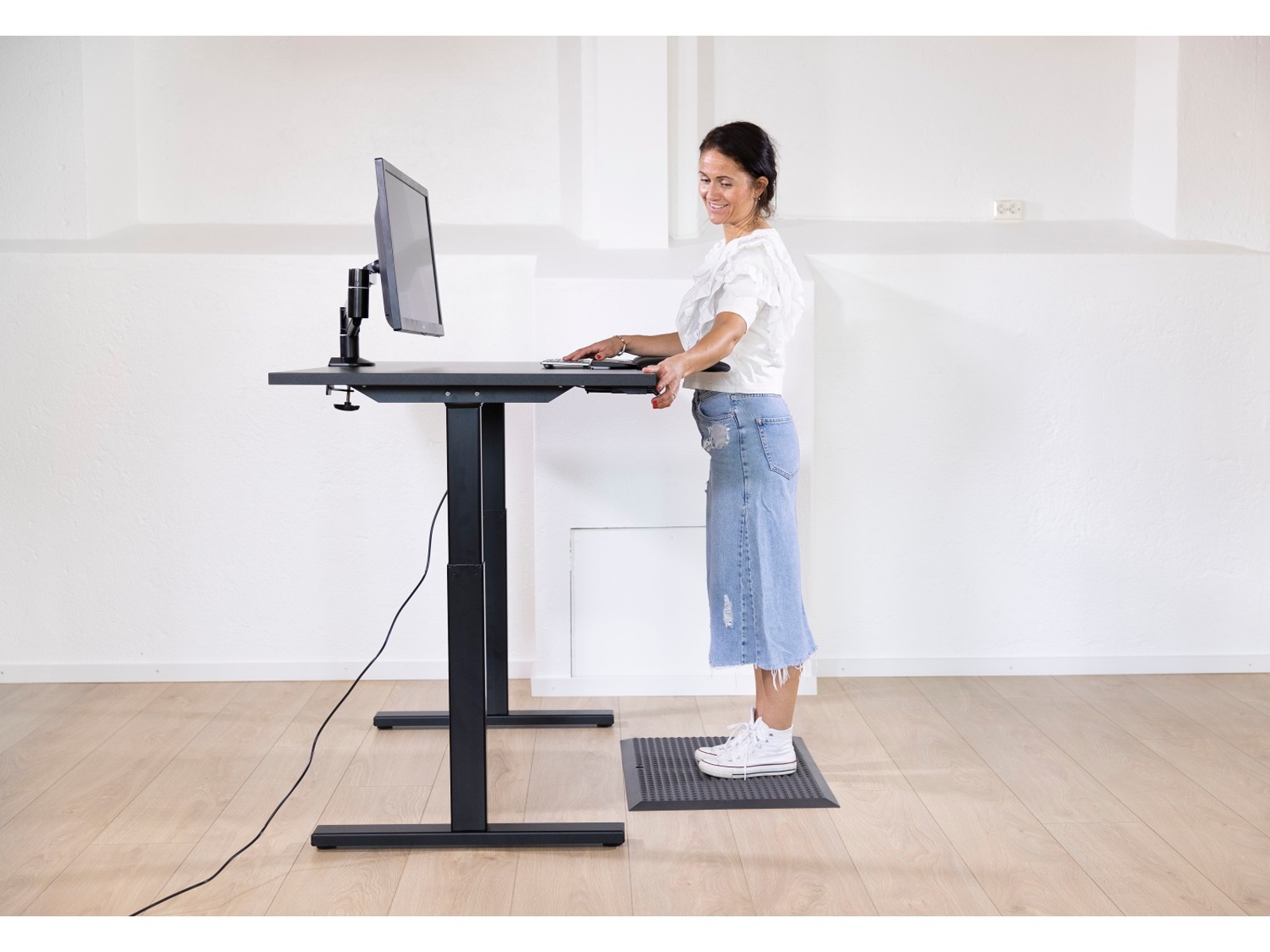 Kenson elektrisk understell er moderne og funksjonelt for sitt – & ståbord. Bordet heves og senkes ved hjelp av to knapper, merket med pil opp og pil ned. Sitt- & ståbord anbefales til de som tilbringer mye av dagen foran dataskjermen. Vårt elektriske understell kan monteres på din eksisterende rektangulære bordplate. Understellet er universalt og kan justeres slik at det passer til bordplater med lengde fra 1400 – 2000 mm. Våre understell er beregnet til proffmarkedet. Det gir fordeler i form av få deler, få skruer og enkel montering. Laget for både proff og konsummarkedet.