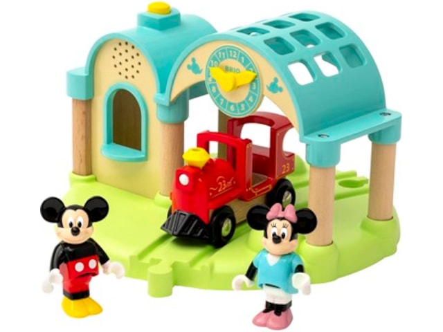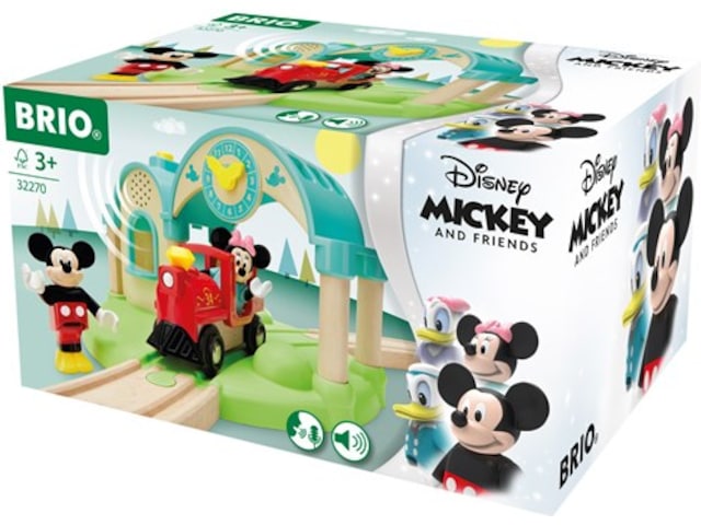 BRIO® Mikke Mus stasjon m/opptak og avspilling «Neste avgang er toget kl. 8.00 til magiske Disney-eventyr». Jernbaneleken blir ekstra fantasifull med 32270 Mikke Mus opptaker og avspiller-stasjon.