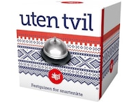 Inneholder 100 spørsmålkort, en fin bjelle samt regler.