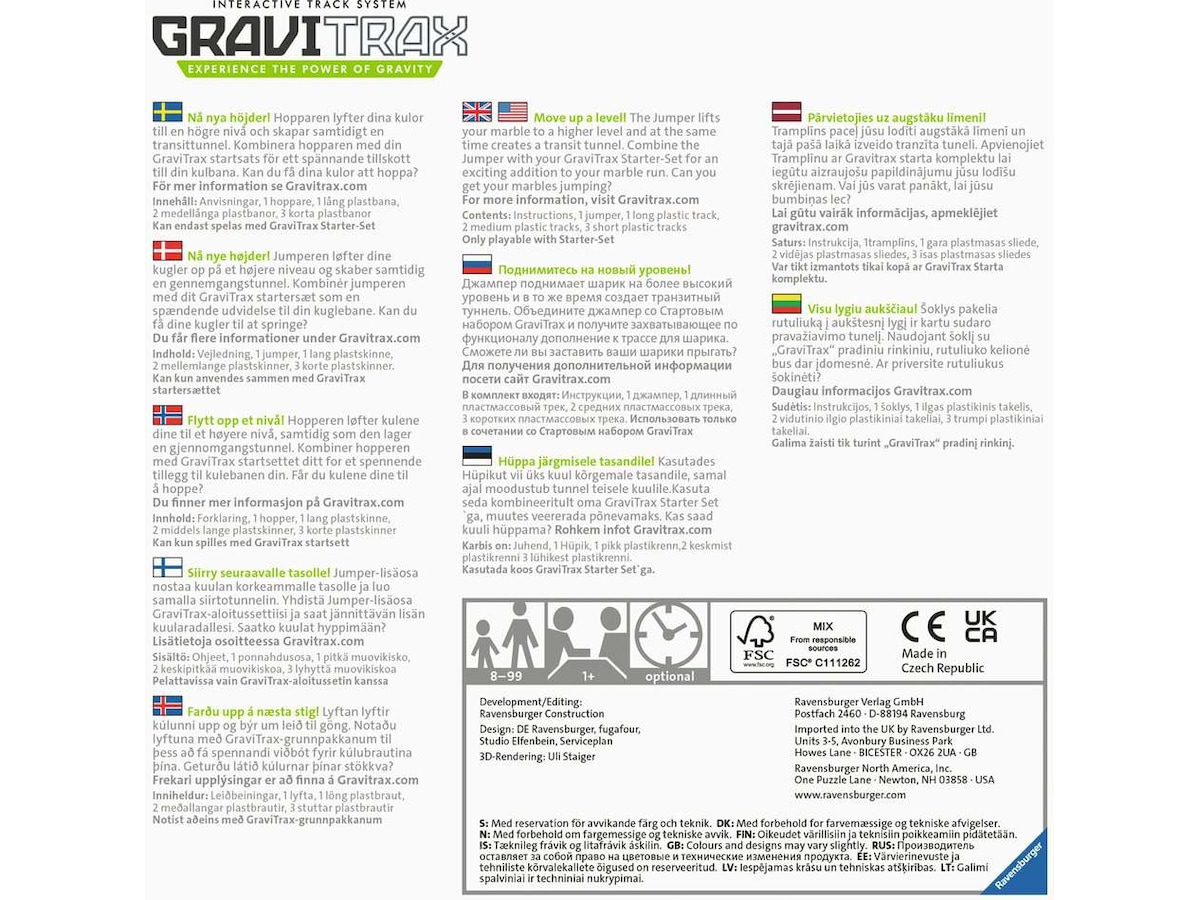 Jumper løfter kulene til et høyere nivå og skaper samtidig en transitt-tunnel. Kombinere Jumper med ditt GraviTrax-startsett for et spennende ekstra element på kulebanen. Kan du få kulen til å hoppe?