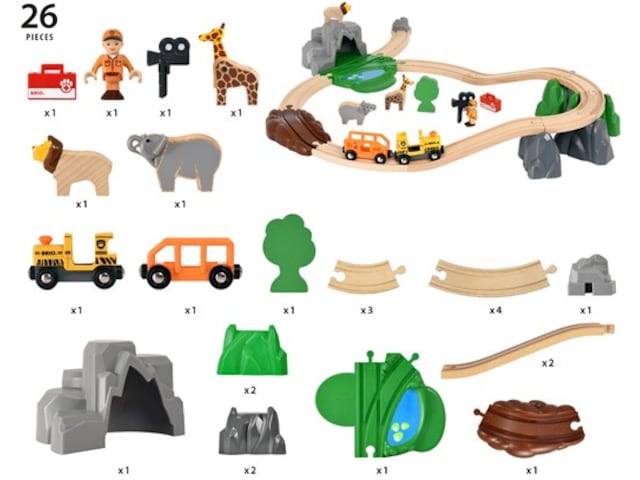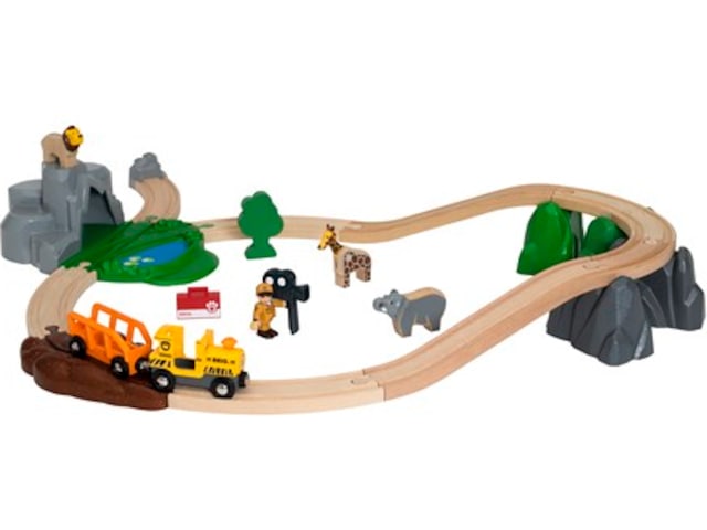 BRIO World Safari-leketog i tre lar deg utforske savannen og se de flotte dyrene i deres naturlige habitat.