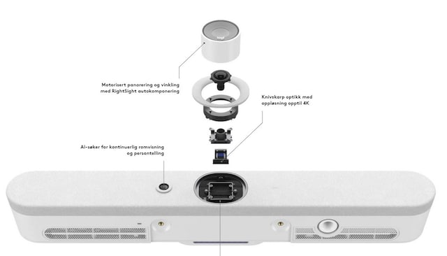 Ved å bruke AI, menneskelig oppfatning og motorisert panorering og vinkling, tilpasser Rally Bar Mini seg møtedynamikken og holder kameraet på handlingen.