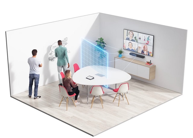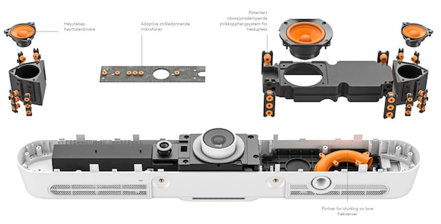 Rally Bar Minis avanserte lydteknikk gir fyldig, naturlig lyd og sørger for at hver stemme blir tydelig hørt.