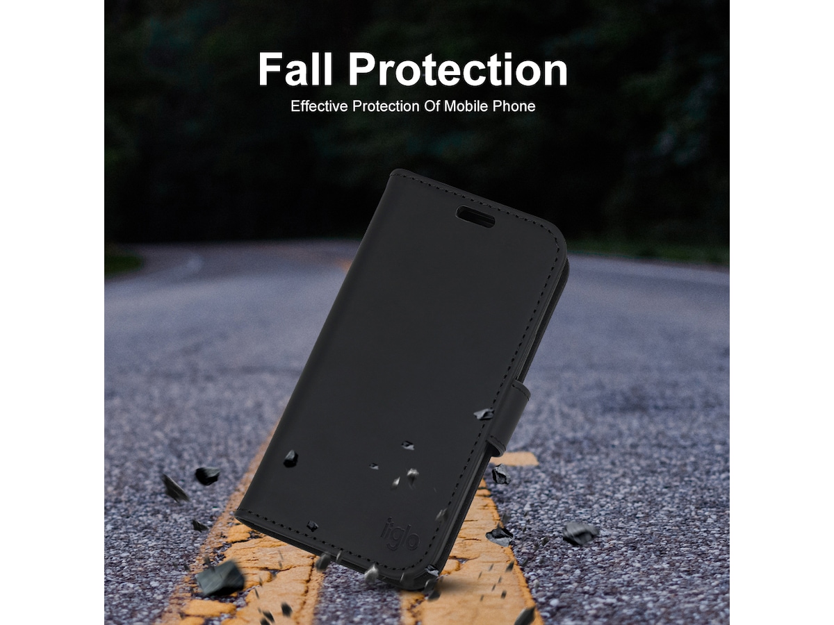 Beskytt din iPhone med iiglo iPhone lommebok deksel i sort utførelse. Dekselet er laget i premium PU lær som er et mykt og holdbart materiale. Dekselet beskyttet mot støt og riper. Den magnetiske hempen sørger for at dekselet er lukket selv når telefonen ligger i jakkelomma eller PC veska.