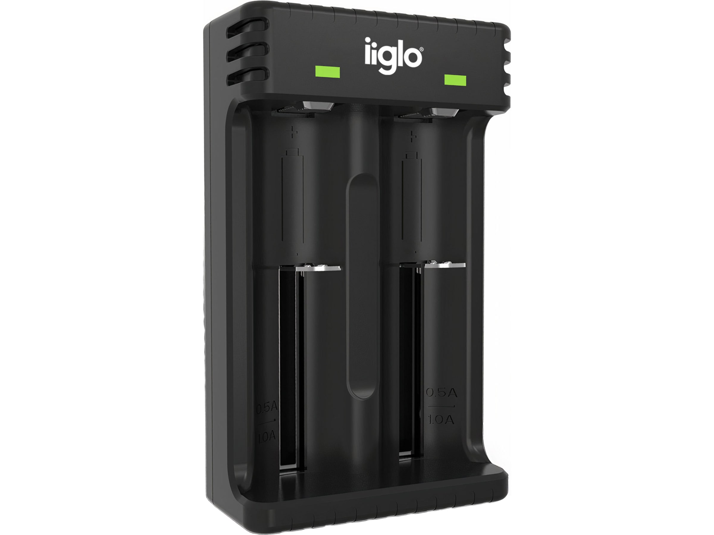 iiglos praktiske USB-batterilader kan lade 2 batterier samtidig, enten de er av typen litium-ion (Li-Ion), nikkel-metallhydrid (Ni-MH) eller nikkel-kadmium (Ni-Cd). Den medfølgende Micro-USB-kabelen lar deg gi strøm til batteriene med en hvilken som helst 5 V USB-utgang, for eksempel veggladere, powerbanks og billadere. LED-indikatorene på laderen blir grønne når batteriene er fulladet.