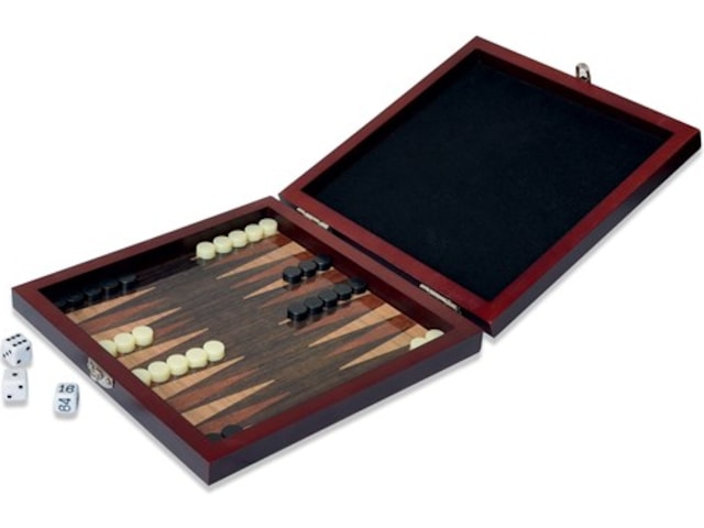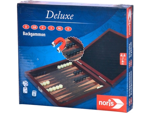 Deluxe Backgammon Reisespill Backgammon i reisestørrelse fra Noris. Spillet har magnetiske spillebrikker som kommer i en treboks. Mål: 16 x 16 cm. Fra åtte år.