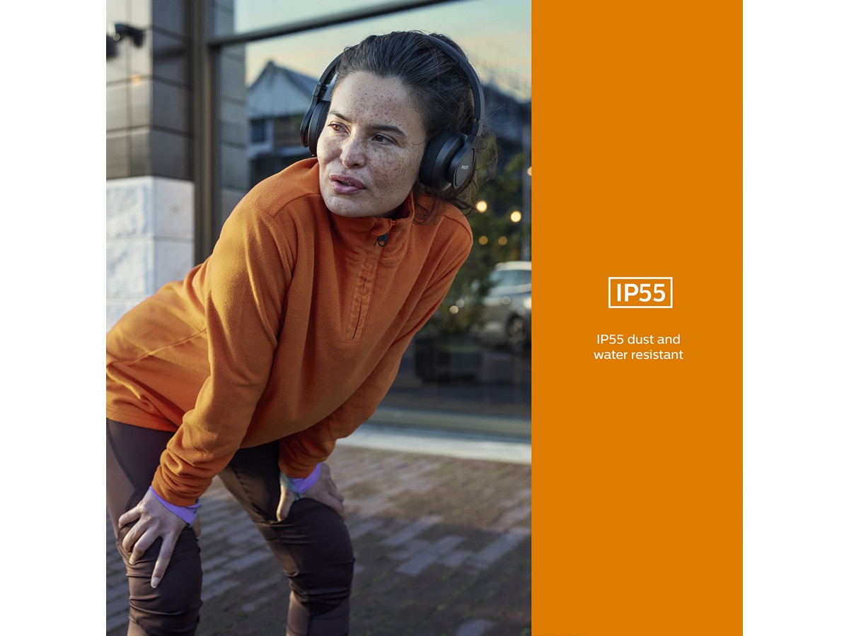 En IP55-rangering betyr at hodetelefonene trives like godt på støvete stier som i kraftig regn. Uansett hvor mye du svetter – og hvor du går – vil ingenting stoppe deg