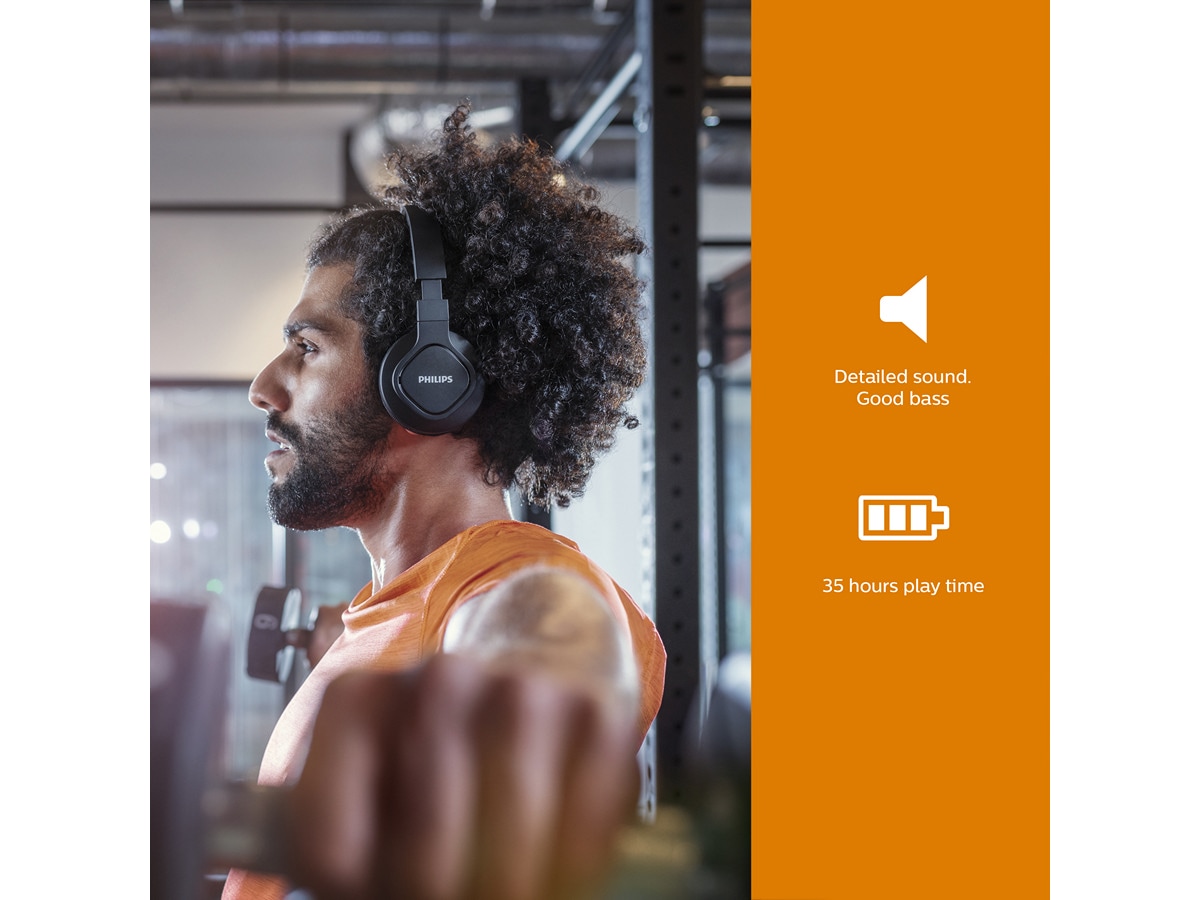 Disse solide og lette trådløse på-øret hodetelefonene er bygget for en aktiv livsstil. Avtakbare og vaskbare ørekoppdeksler gir en komfortabel passform uansett om du går på tredemøllen eller stranden. 35 timers avspillingstid holder musikken i gang.