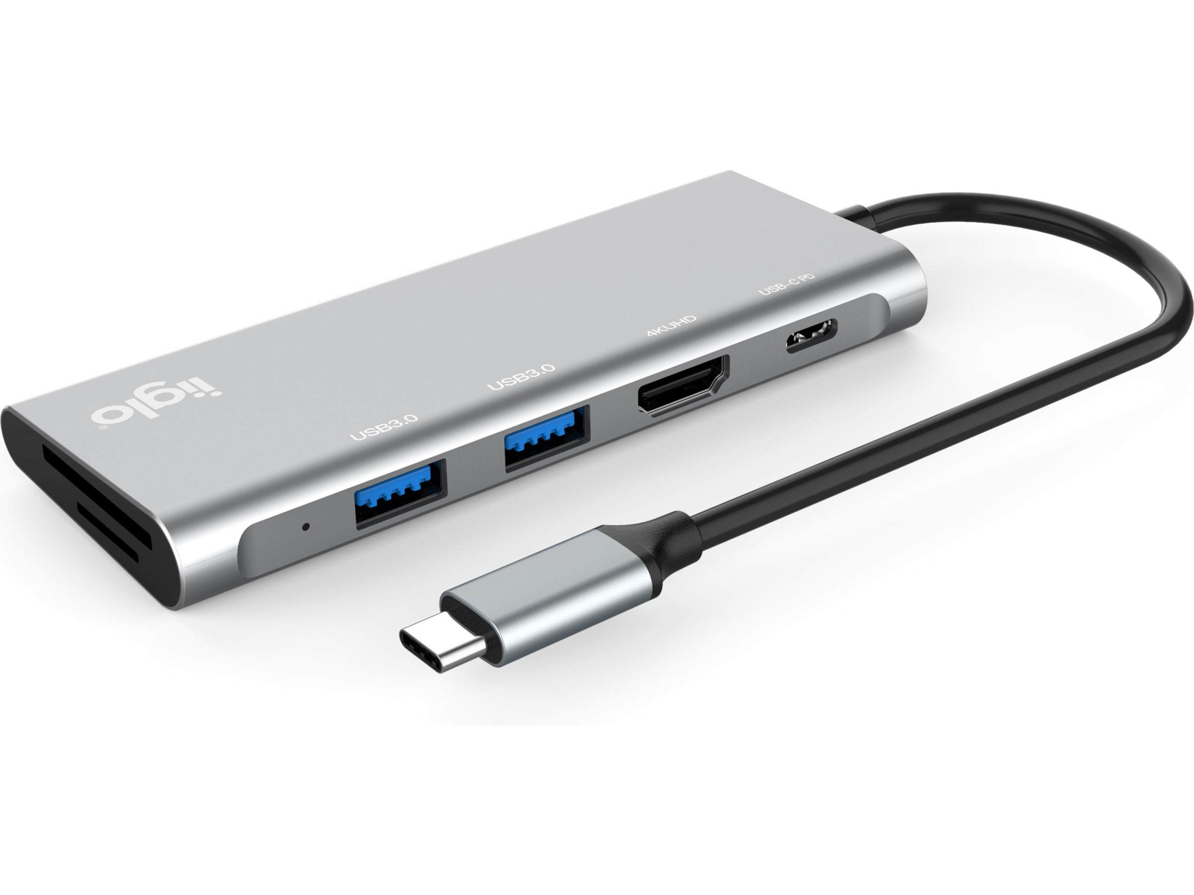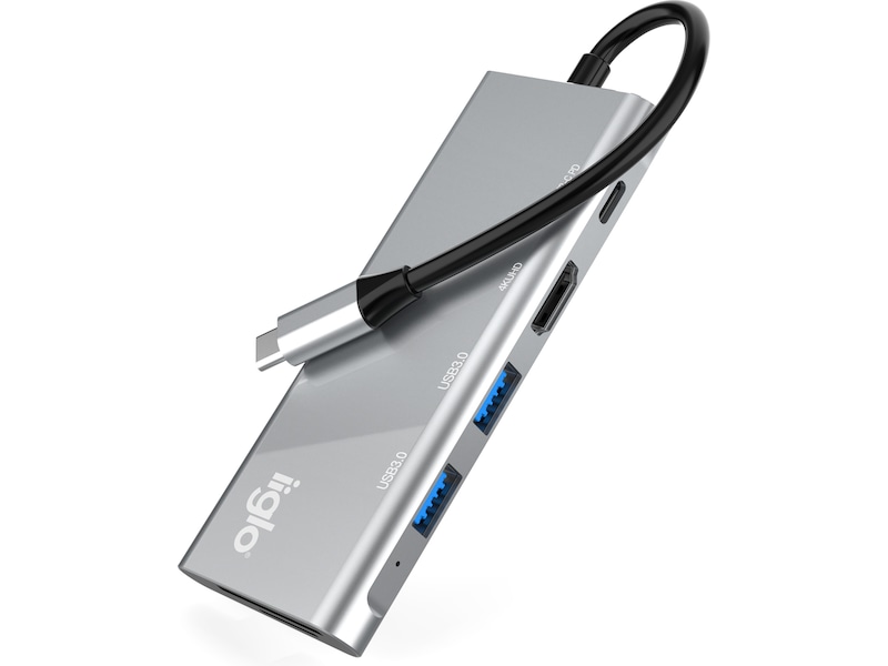 6-i-1-huben fra iiglo er kompatibel med Windows 10/8/7/XP, Apple Mac OS 10.2.8 og nyere samt Linux. Den kan kobles til enheten din via den 15 cm lange USB Type C 3.1-kabelen.