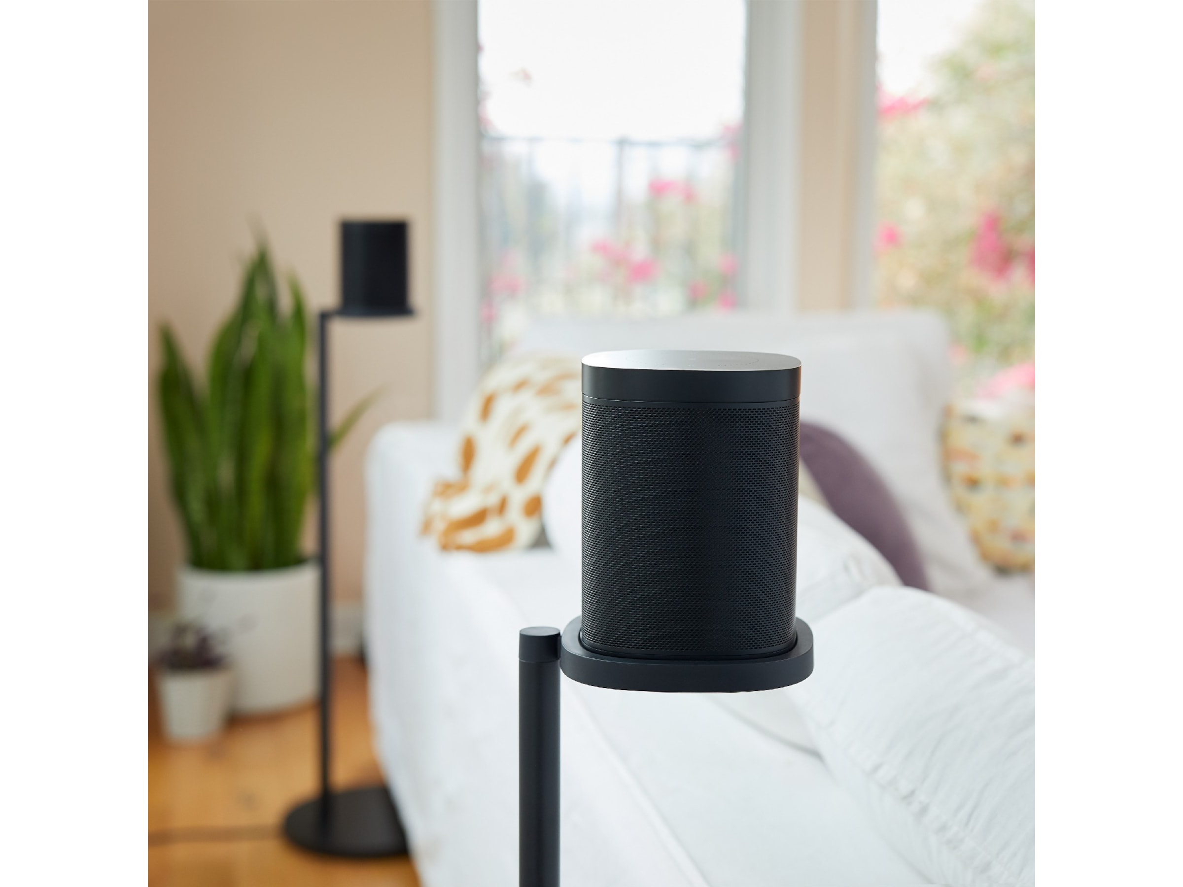 Sonos stativ (par) Plasser hjemmekinoens surroundhøyttalere i optimal høyde med dette paret med spesialkonstruerte høyttalerstativer. Kompatibel med: Enkel montering Skjuler strømkabelen til høyttaleren for et elegant utseende Farge, materiale og detaljer er nøyaktig avstemt for å kjennes som en utvidelse av høyttaleren Høyde: 838 mm Vekt: 2,8 kg hver