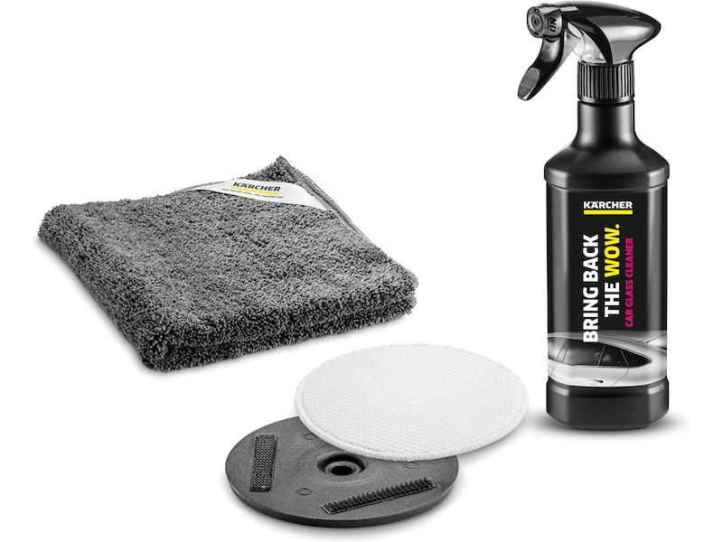 Bilglassrensen hjelper til med å løsne skitten, uten at det er nødvendig å bruke vann. Den myke mikrofiberkluten garanterer et stripefritt resultat.