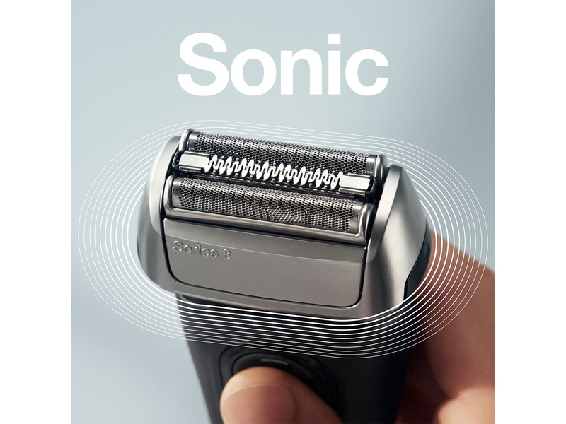 Med Braun Series 8 trenger du ikke velge mellom nærbarbering og skånsomhet. Den innovative Sonic-teknologien, med sine 10 000 mikrovibrasjoner, bidrar til å fange opp mer hår mens du fører den forsiktig over huden.
