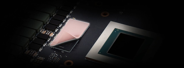 Rikelige mengder med varmeputer gjør at forskjellige komponenter i kortet overfører varme direkte til kjøleribben for å gi bedre kjøling.