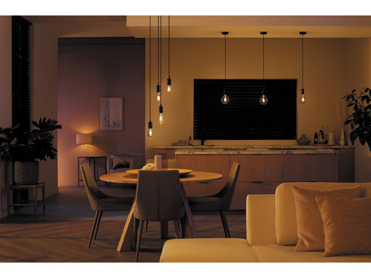 Philips Hue White ambiance Filament er en serie med unike smarte LED-pærer som gir et klassisk uttrykk og en rik atmosfære til hjemmet ditt.