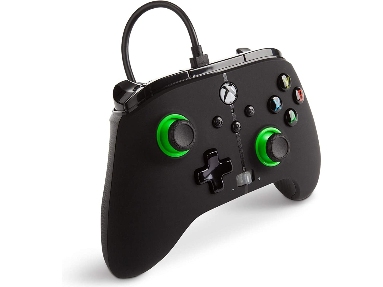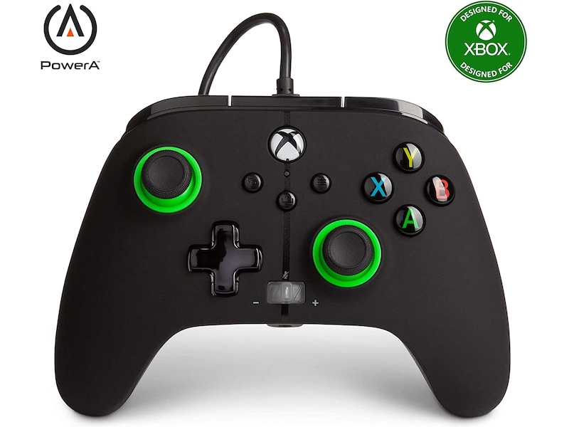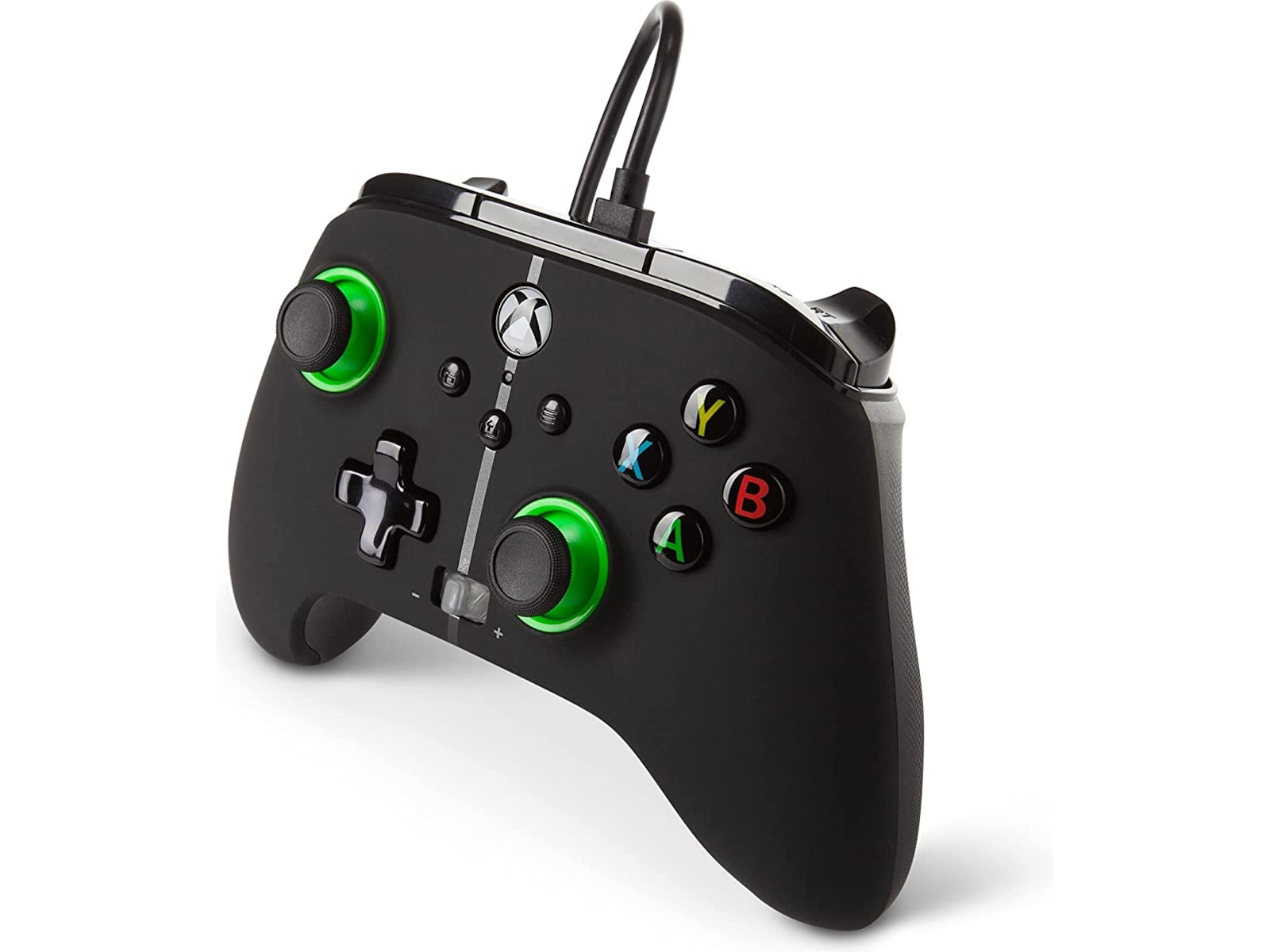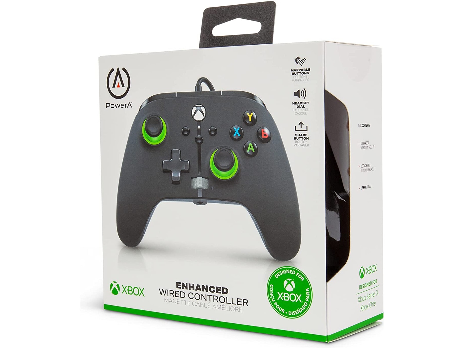 Denne PowerA Enhanced Wired Controller inkluderer en delingsknapp, hjul for headset, friksjonsmotvirkende ringer og grep med diamantstruktur, pluss to avanserte gamingknapper for å forbedre spillopplevelsen din.