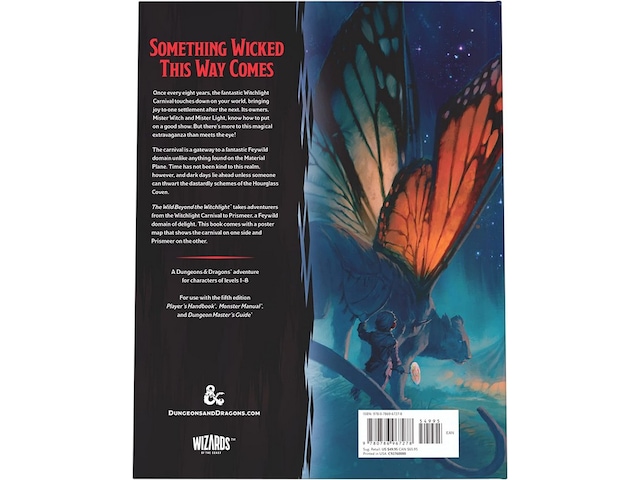 The Wild Beyond the Witchlight tar eventyrere fra Hekselyskarnevalet til Prismeer, et gledesdomene i Feywild, og er laget for figurer på nivå 1–8. Denne boken leveres med et plakatkart som viser karnevalet på den ene siden og Prismeer på den andre.