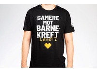 Gamere mot Barnekreft level 2 (GMB2) går av stabelen 25. november, men allerede nå kan du kjøpe årets viktigste, og etter vår mening kuleste, t-skjorte. Alt overskudd går uavkortet til Barnekreftforeningen.