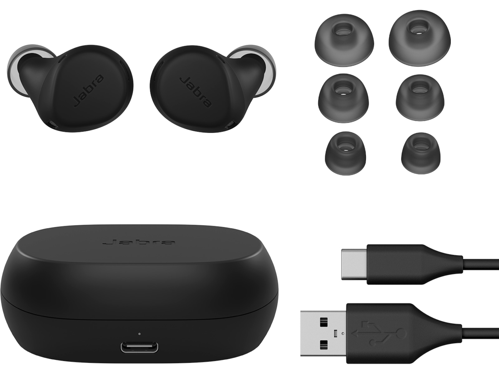 Jabra Elite 7 Active er laget for dem som vil flytte egne grenser. Med unik Jabra ShakeGrip™-teknologi og svært kompakt utforming holder de seg på plass selv under de hardeste treningsøktene, og aktiv støydemping (ANC) gir deg fantastisk lyd, uansett hvor du trener.