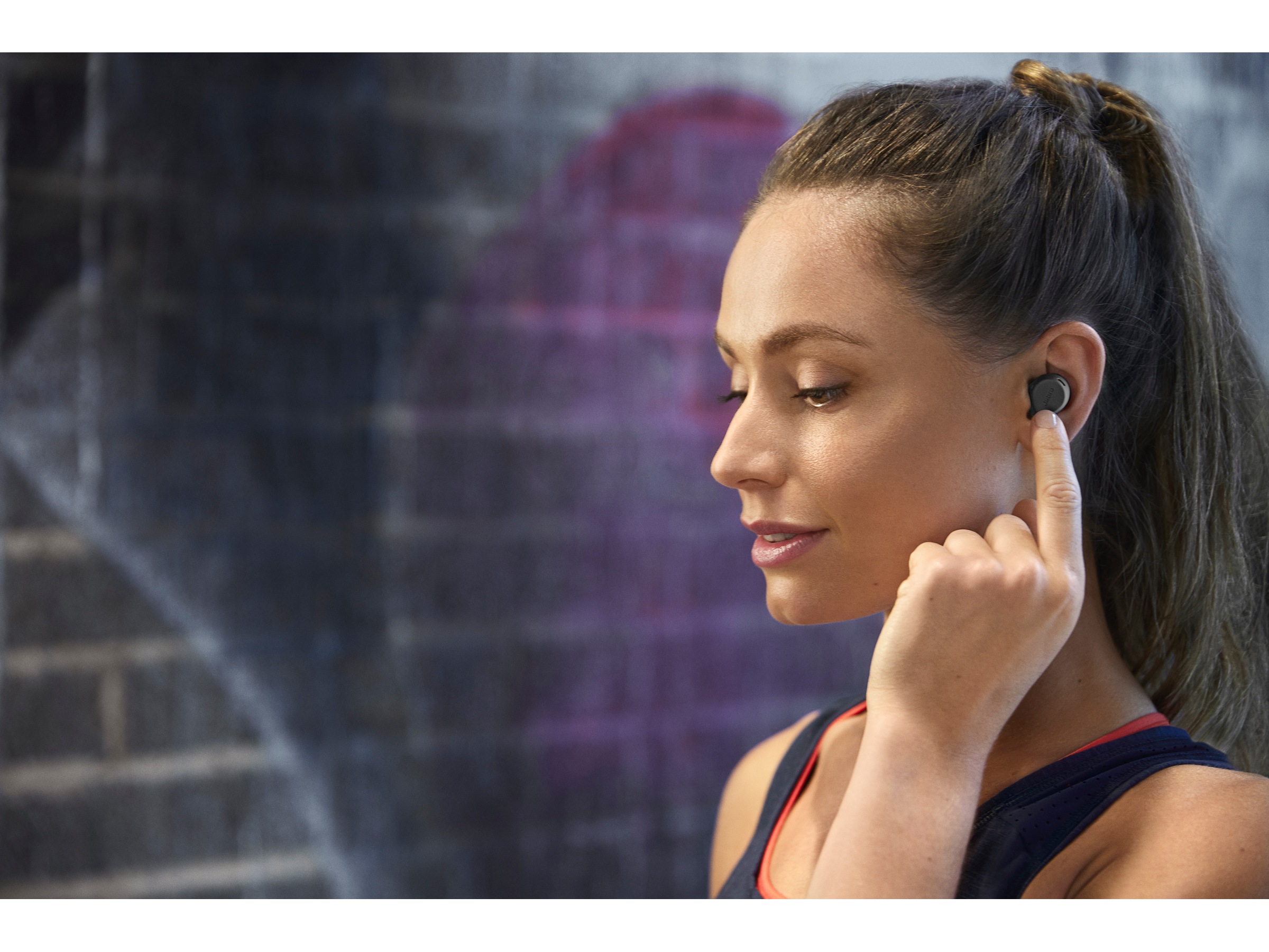 Vi har nyutviklet øreproppene våre for den ultimate aktive passformen med vår Jabra ShakeGrip™-teknologi som er designet for å holde seg på plass, uansett hvor hardt du trener.