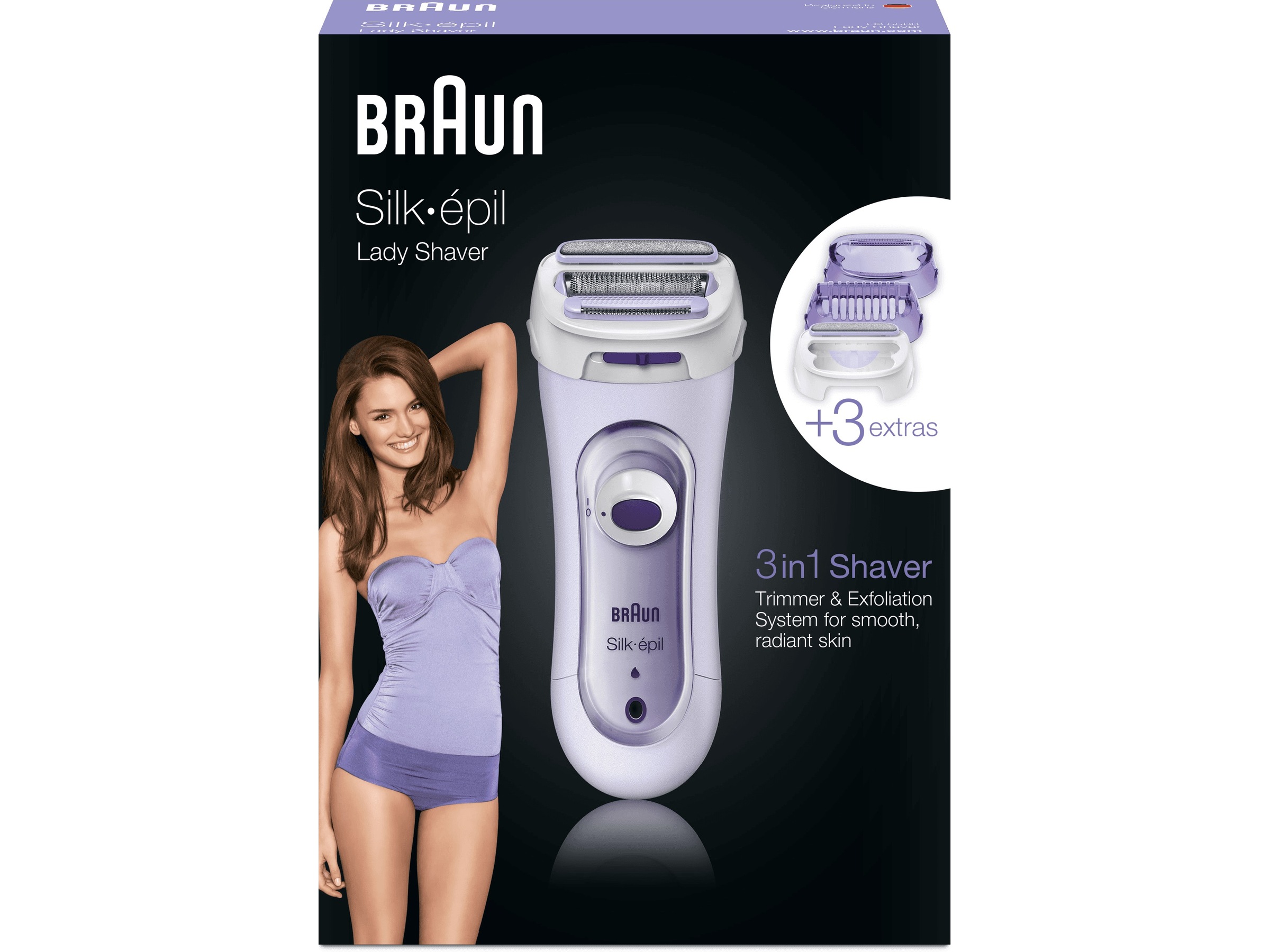 Braun Silk-épil Lady Shaver 5-560 Lilla – 3-i-1 Trådløst Elektrisk Barbermaskin, Trimmer- Og Eksfolieringssystem