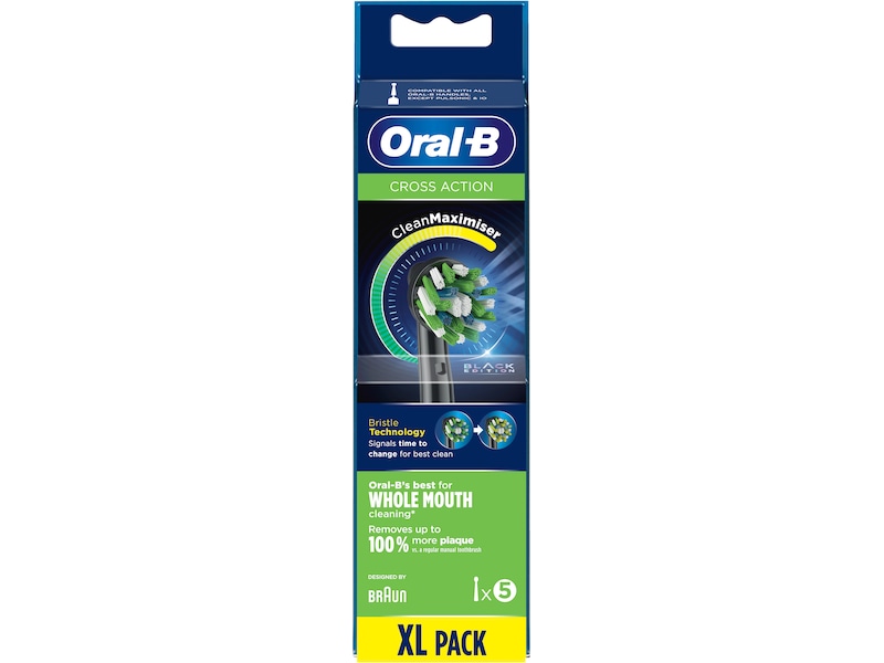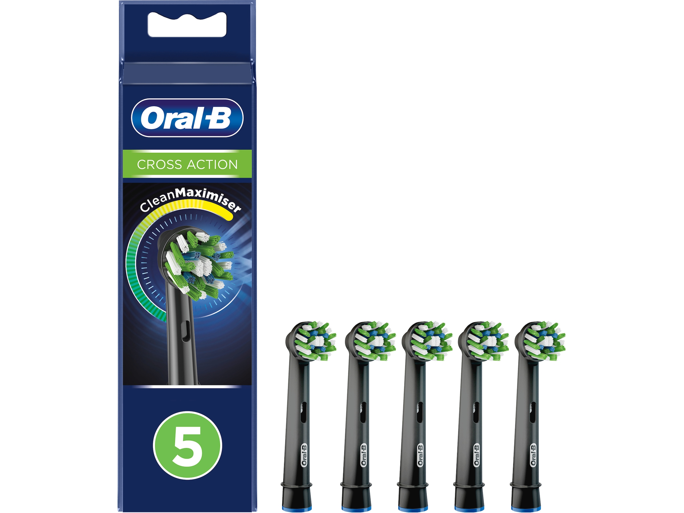Oral-B CrossAction Tannbørstehode I Sort Utgave Med CleanMaximiser-teknologi, Pakke Med 5 Stk.
