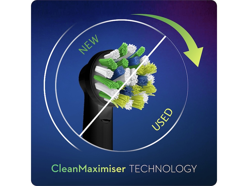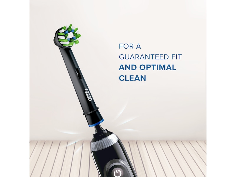 Oral-Bs forbedrede CrossAction-børstehoder er utviklet med CleanMaximiser-teknologi som endrer fargen på børstestråene fra grønn til gul når de bør skiftes, for optimal ytelse og den beste rengjøringen.