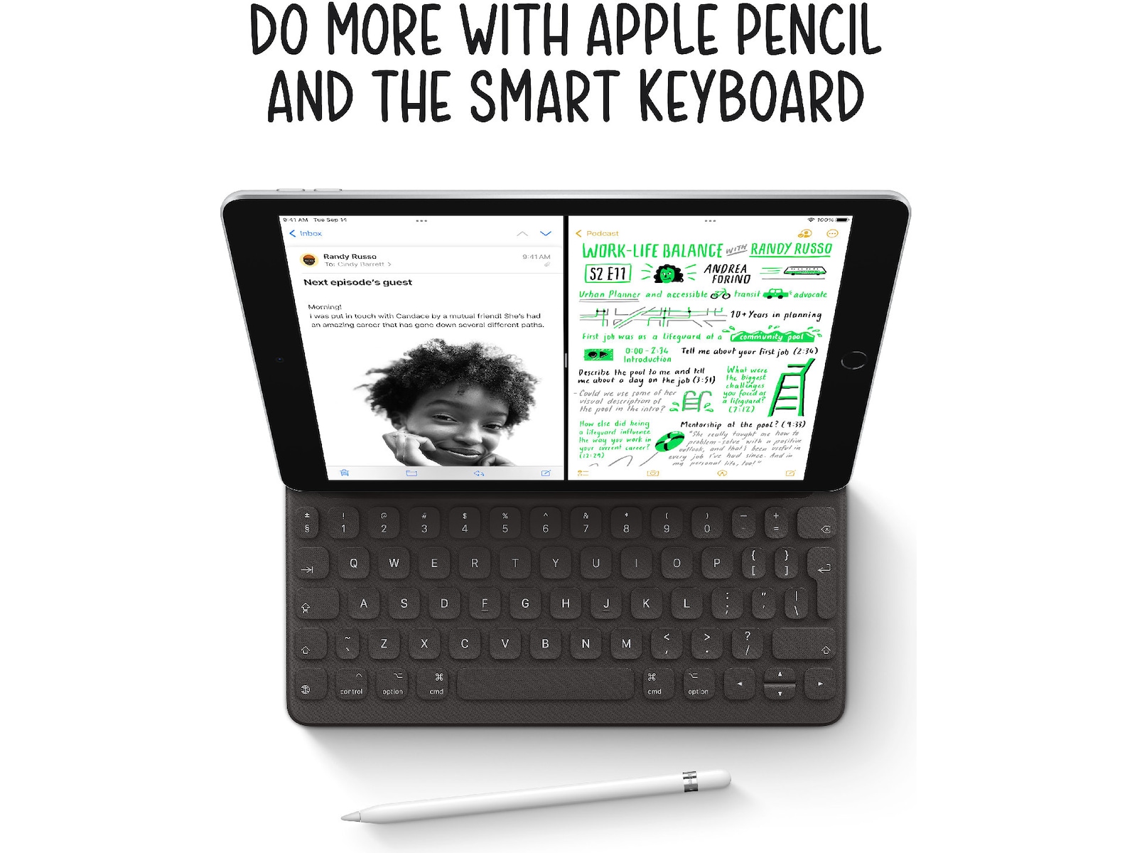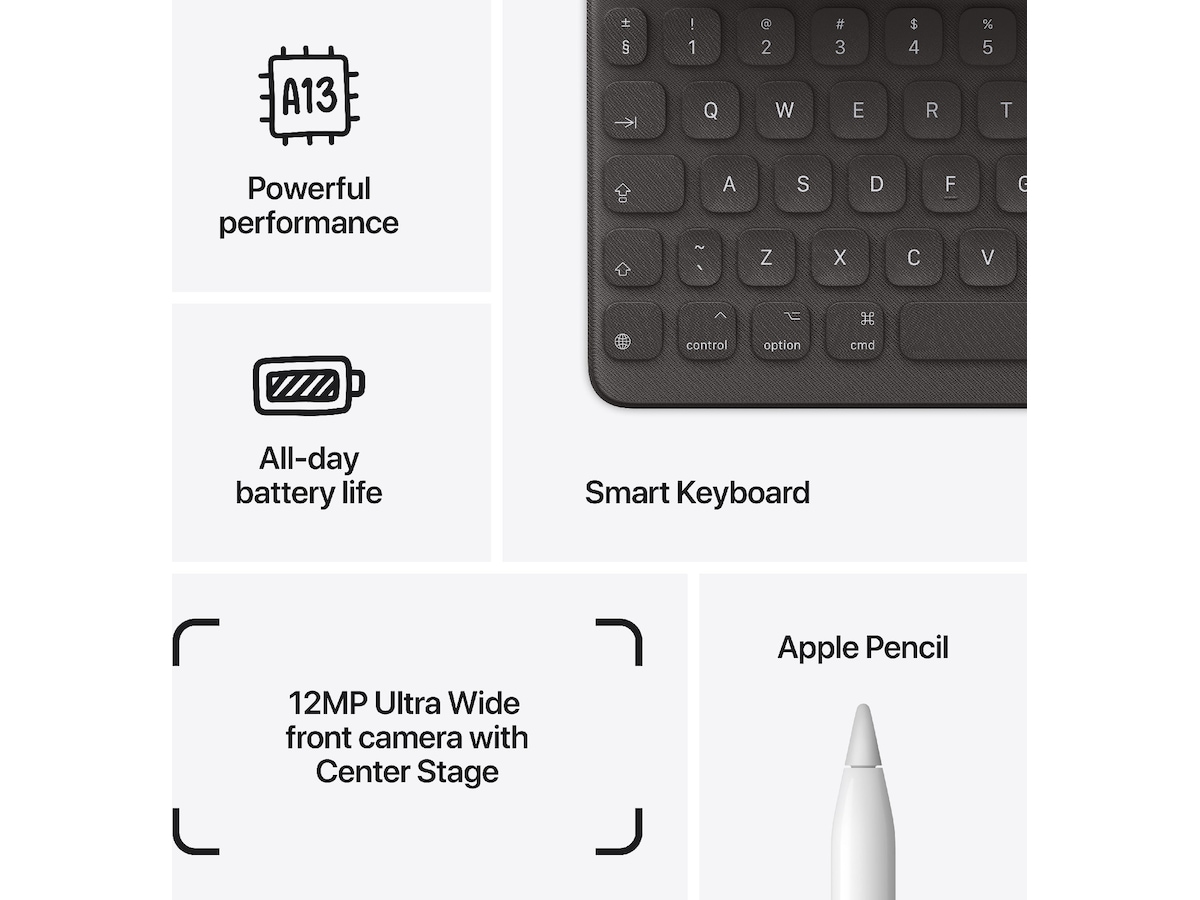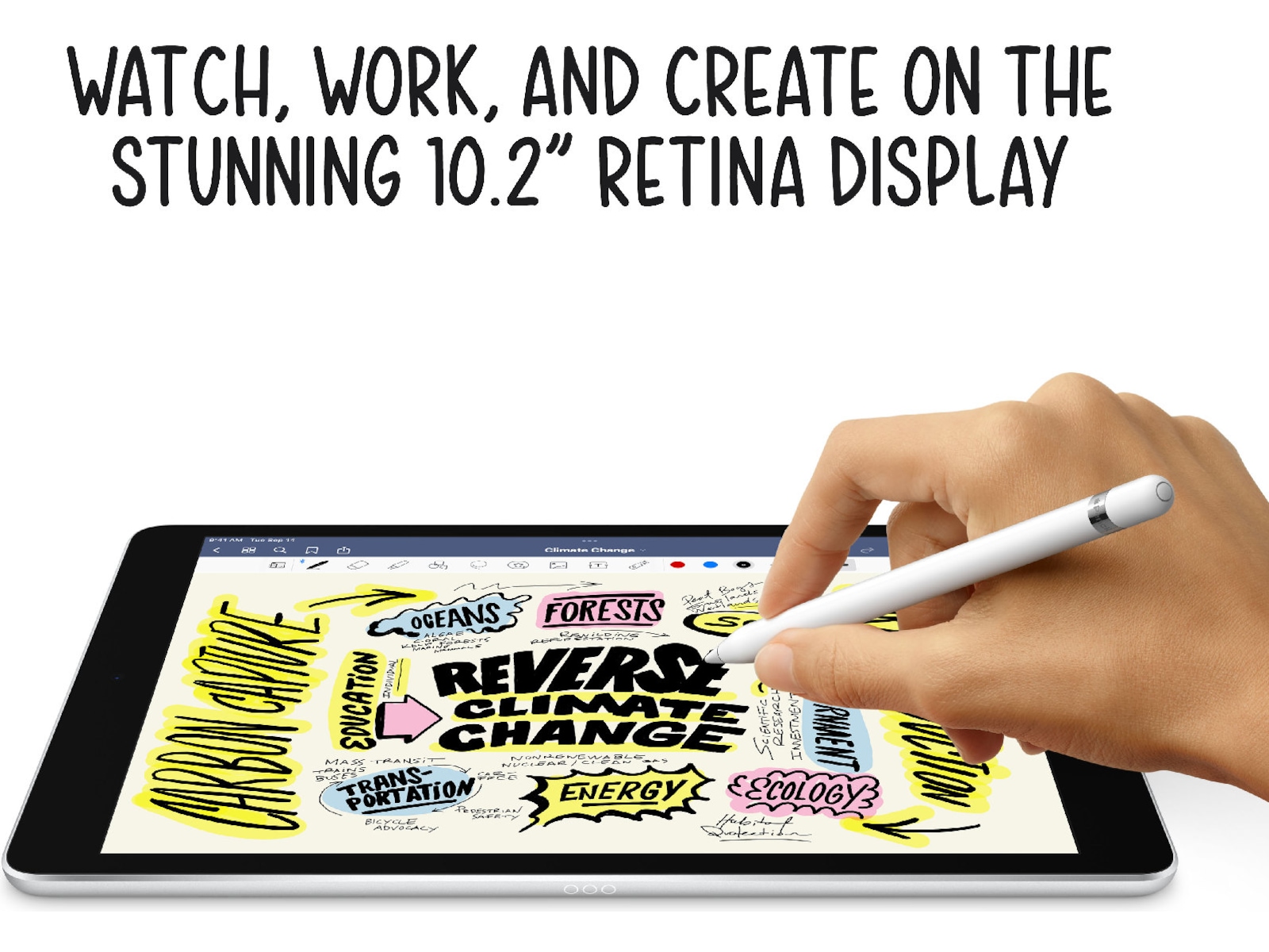 Kraftig. Enkel å bruke. Allsidig. Nye iPad har en praktfull 10,2-tommers Retina-skjerm, en kraftig A13 Bionic-chip, frontkamera med ultravidvinkel og i fokus, og den fungerer med Apple Pencil og Smart keyboard.¹