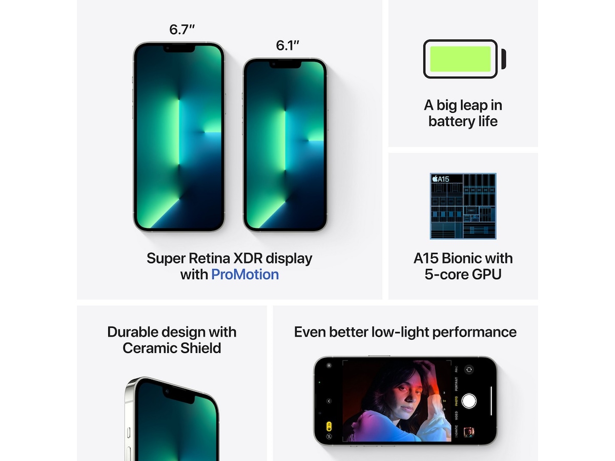 iPhone 13 Pro. Tidenes største oppdatering av Pro-kamerasystemet. Super Retina XDR-skjerm med ProMotion for en raskere og mer responsiv opplevelse. Lynrask A15 Bionic-chip. Superrask 5G.¹ Slitesterk utforming og et stort byks i batteritid.